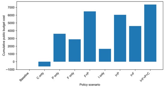 Governance indicators include the adoption rate; the policy compliance rate (adopting and/or enforced among non-adopters); an adoption clustering metric (the difference between adopter neighbour adoption exposure and overall adoption); and a high–low income-group adoption gap. Public budget accounting includes the following: per-step administrative costs for active instruments (F/P/C) scaled by population size; subsidy expenditures for successful new adoptions under I; enforcement costs per enforced case under C; and fine revenues under C. When fines affect household welfare, they are paid from wealth and (if necessary) borrowing subject to the debt cap; unpaid portions are tracked separately.
