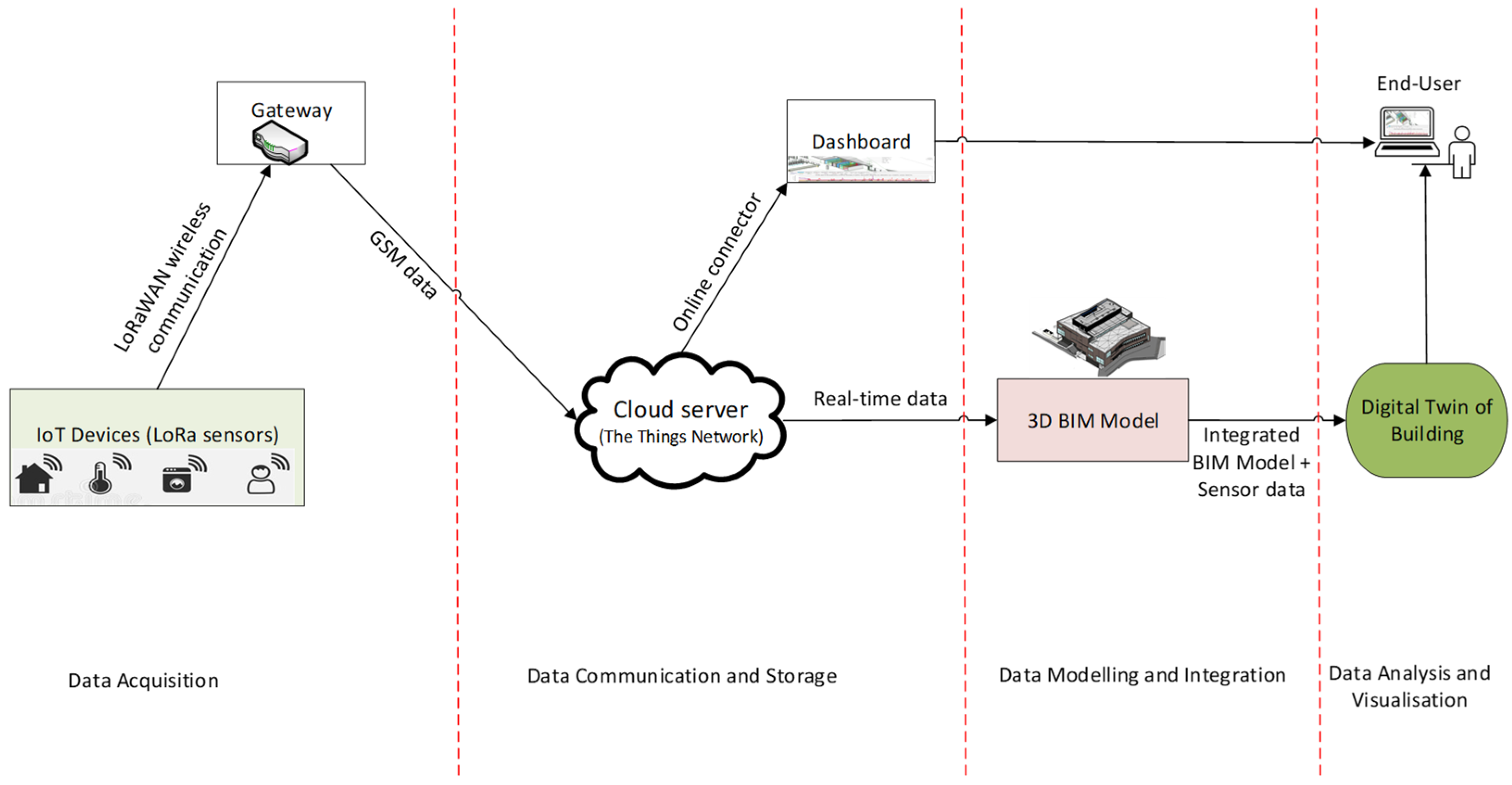 - Desogus, G.; Quaquero, E.; Rubiu, G.; Gatto, G.; Perra, C. Bim and iot sensors integration: A framework for consumption and indoor conditions data monitoring of existing buildings. Sustainability 2021, 13, 4496. [Google Scholar] [CrossRef]