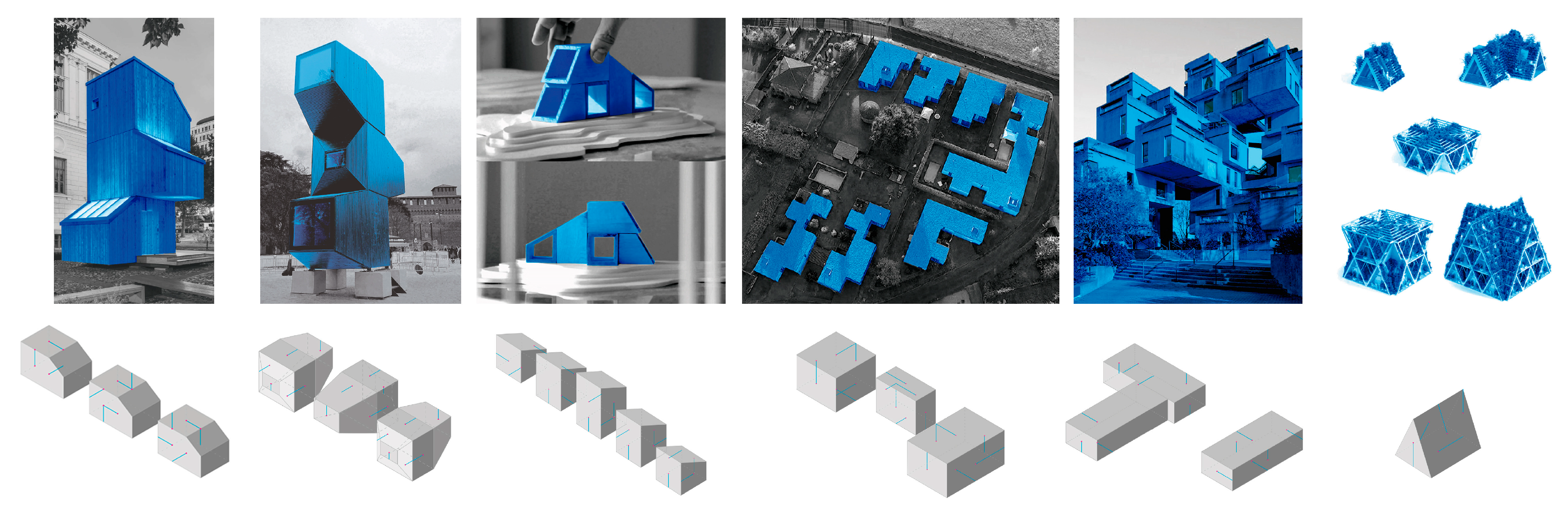The proposed methodology combines case study analysis with parametric simulations of modular growth. In an initial phase, geometric and programmatic information from six selected prefabricated modular housing projects is collected and synthesised. This material serves as the basis for reconstructing the base modules and their original aggregation logic.
