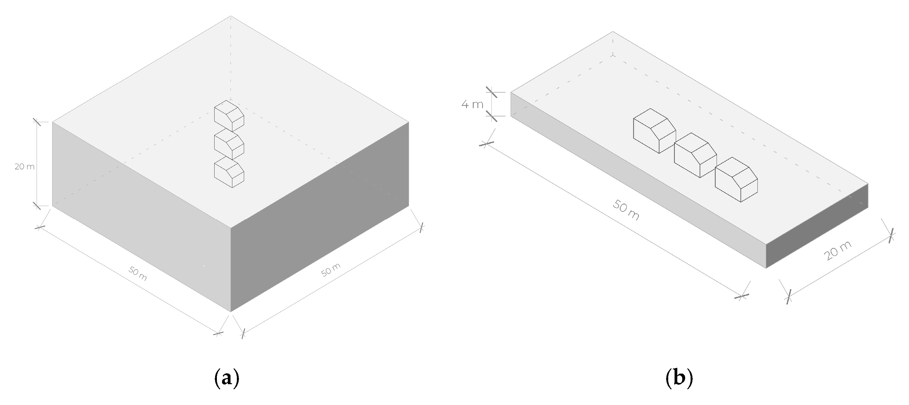 12]. Based on the original documentation for each project, their base modules were reconstructed and aggregation rules were implemented within the Rhinoceros–Grasshopper–WASP environment, testing multiple growth scenarios.