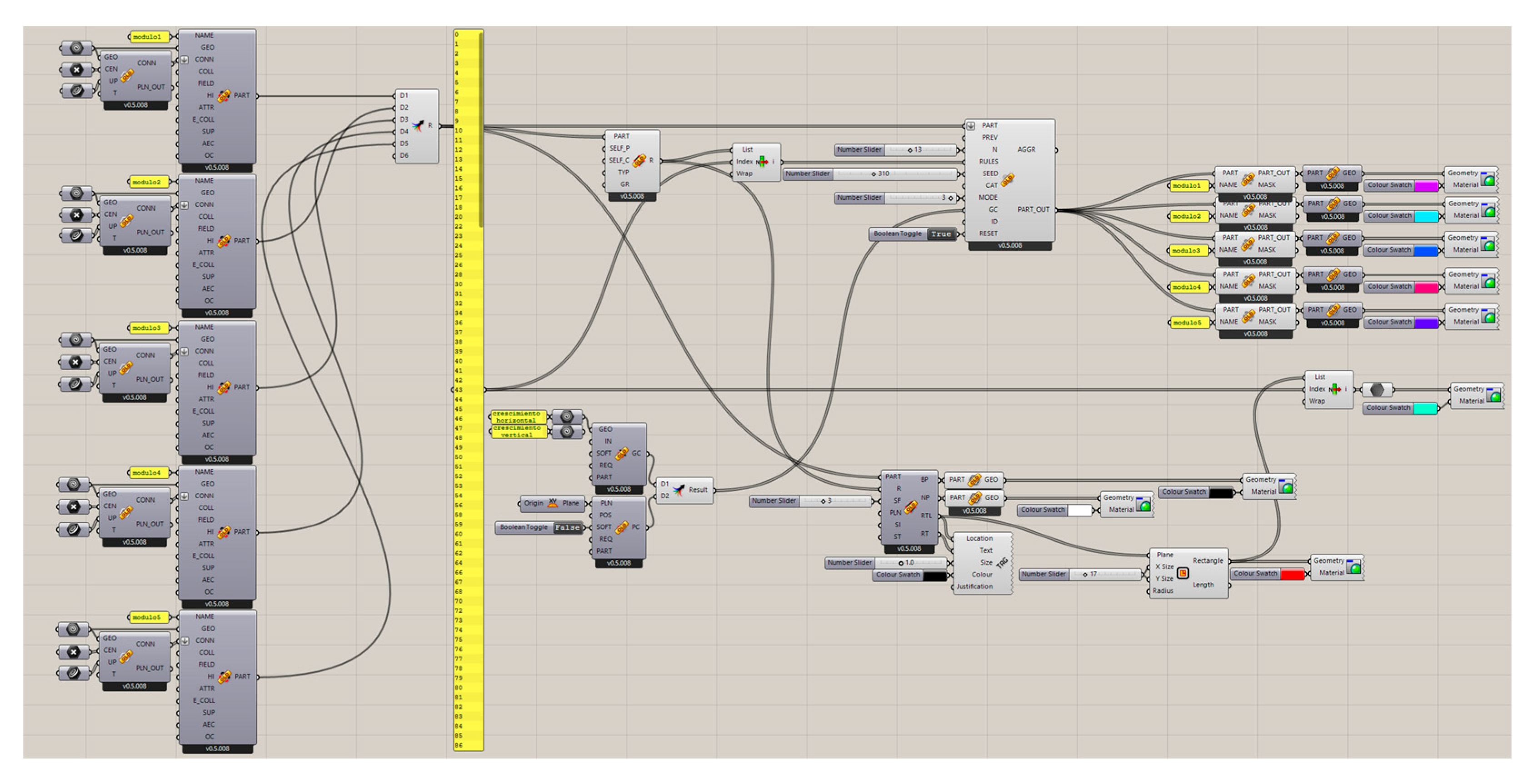 The WASP plugin follows this trajectory by providing a framework for discrete design based on assembly rules between three-dimensional modules. Its successive developments have been described by Rossi and Tessmann [