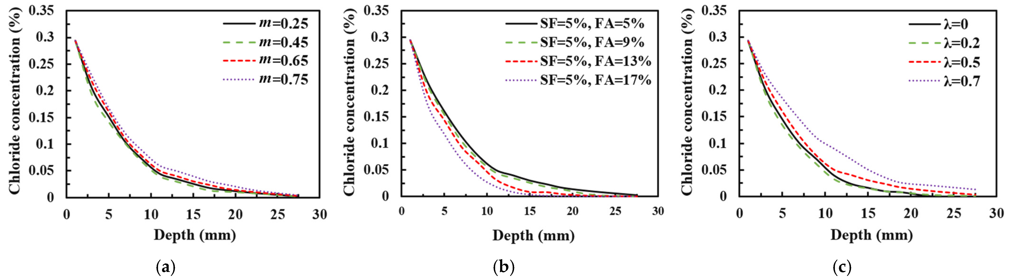 - Zhang, W.-M.; Ba, H.-J. Effect of silica fume addition and repeated loading on chloride diffusion coefficient of concrete. Mater. Struct. 2013, 46, 1183–1191. [Google Scholar] [CrossRef]