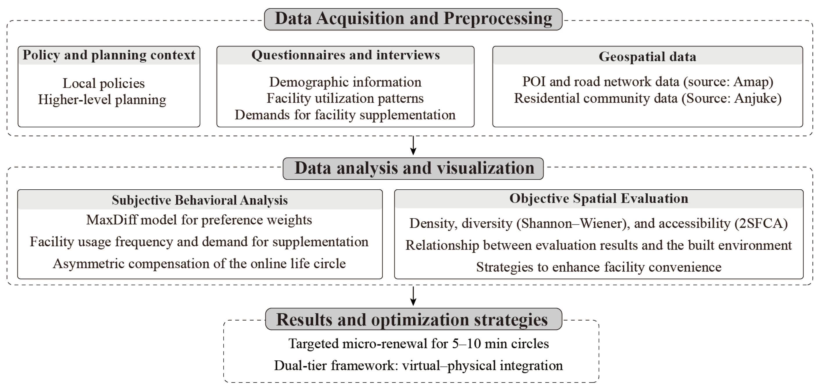 - Wu, L.; Niu, Q.; Ajiaibibula, A.; Xi, Y. Exploration of Online and Offline Community Life Circle with Virtuality-Reality Fusion: Theoretical Advances and Planning Practices. Urban Plan. Forum 2024, 2, 25–33. [Google Scholar] [CrossRef]