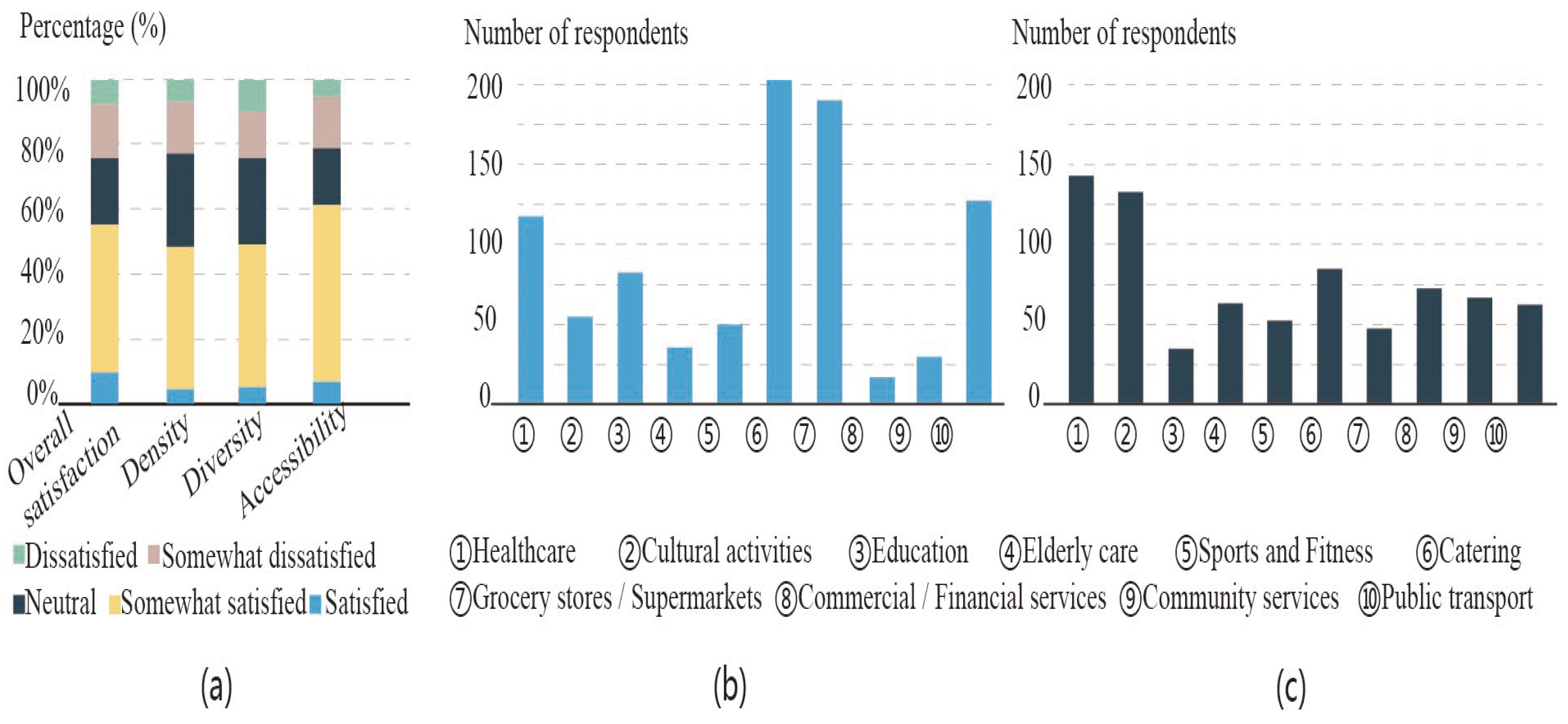 - Are you satisfied with the overall arrangement of service facilities within a 15 min walking distance from your residence?