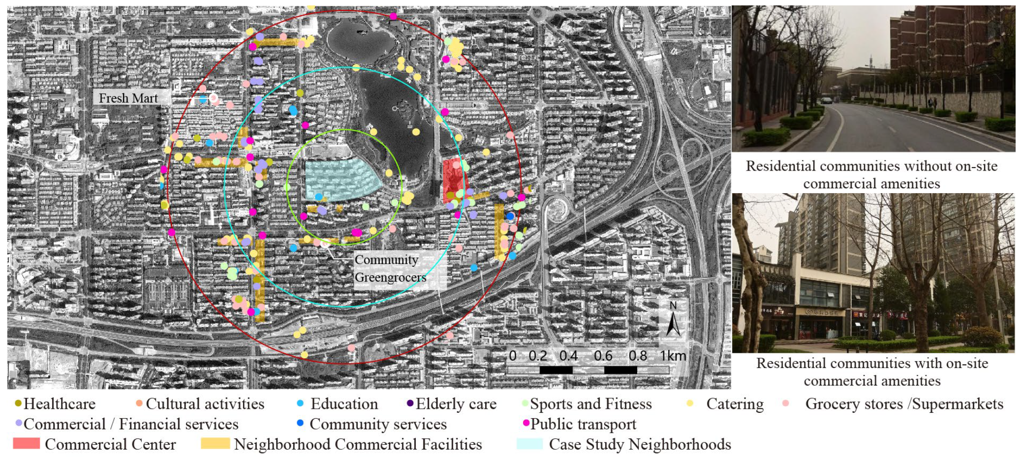 - Niu, Q.; Yi, S.; Gu, C.; Zhu, Y.; Wang, P. New Concept and Approacheset to the Reconfiguration of Service Facilities of Online and Offline Community Life Circle: A Case Study of Wuhan. Urban Plan. Forum 2019, 6, 81–86. [Google Scholar] [CrossRef]