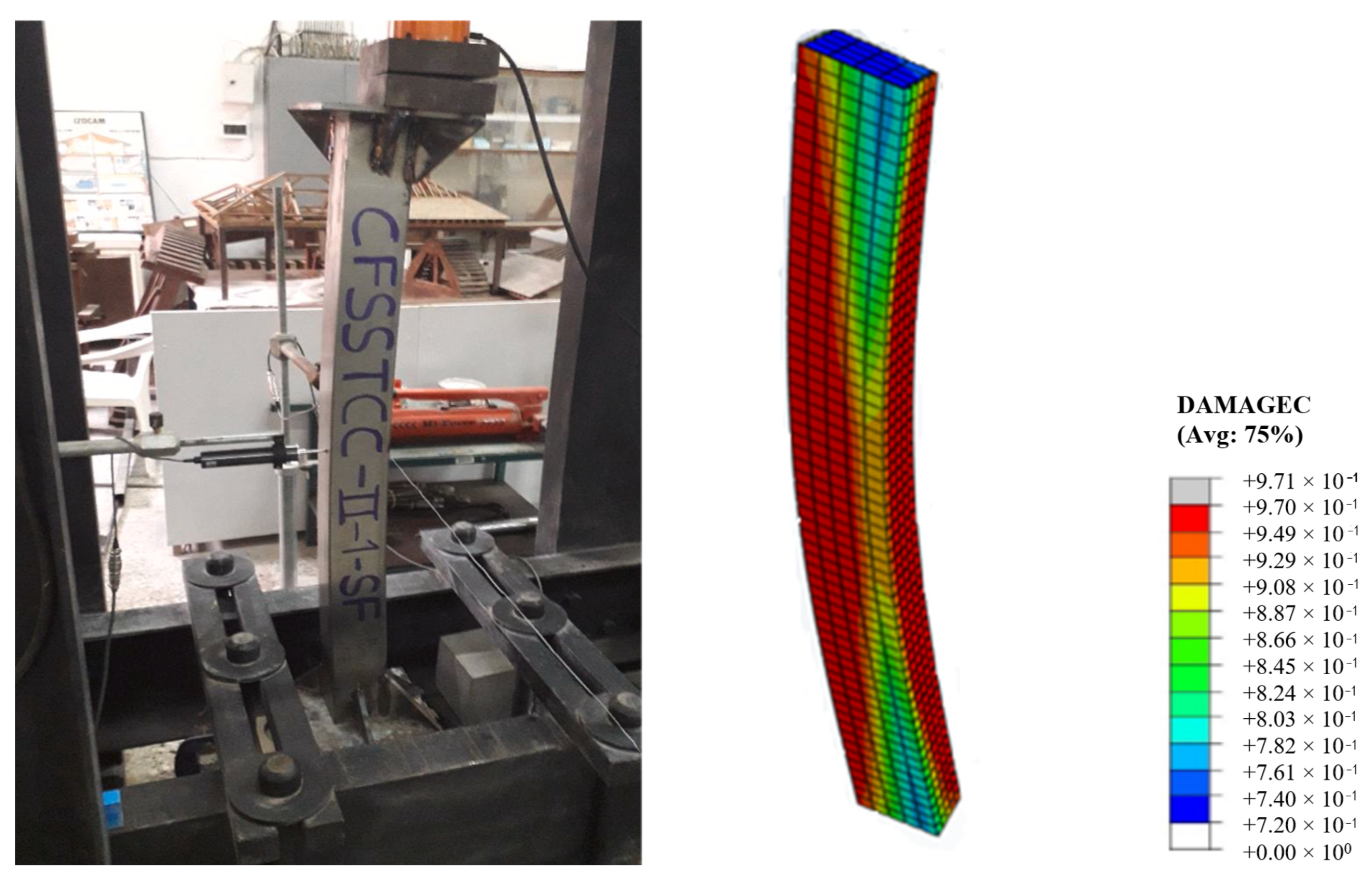 - Lubliner, J.; Oliver, J.; Oller, S.; Onate, E. A plastic-damage model for concrete. Int. J. Solids Struct. 1989, 25, 299–326. [Google Scholar] [CrossRef]