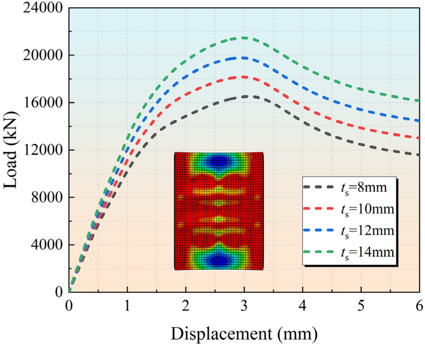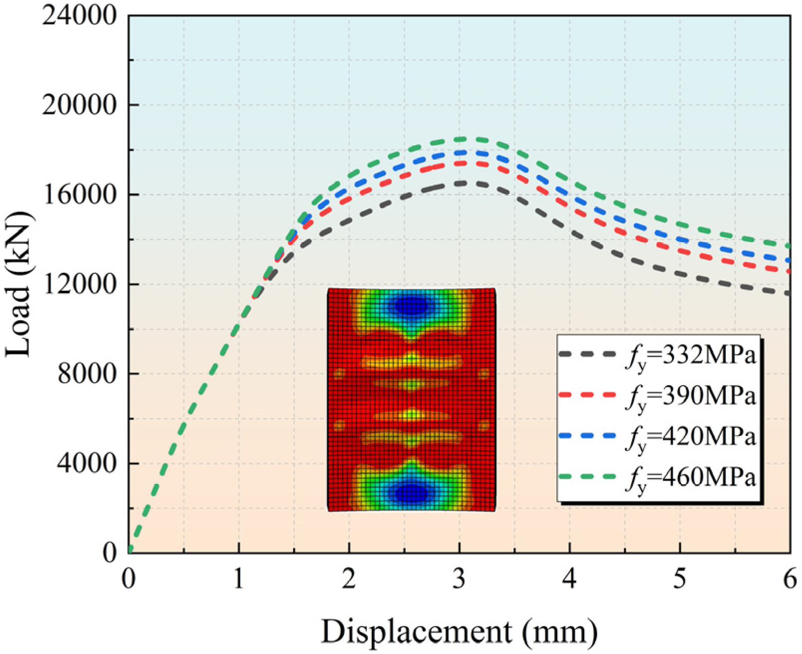 3.4.2. Comparison of Load–Displacement Curves
