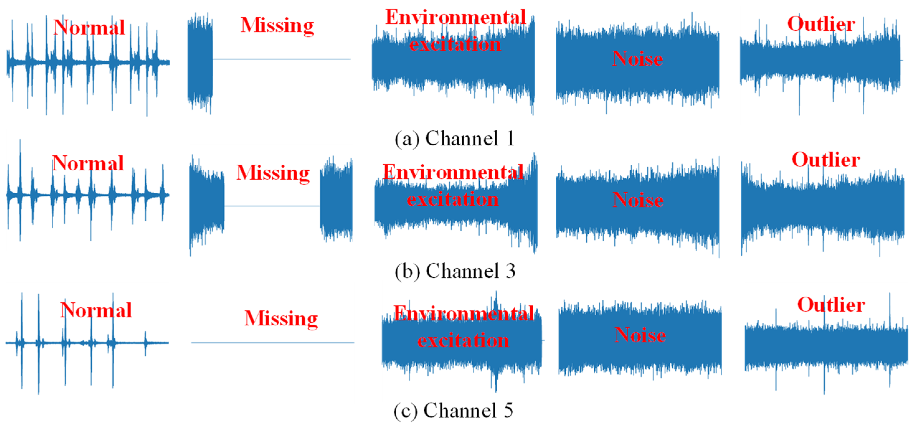 - Tang, Z.; Chen, Z.; Bao, Y.; Li, H. Convolutional Neural Network-Based Data Anomaly Detection Method Using Multiple Information for Structural Health Monitoring. Struct. Control Health Monit. 2019, 26, e2296. [Google Scholar] [CrossRef]