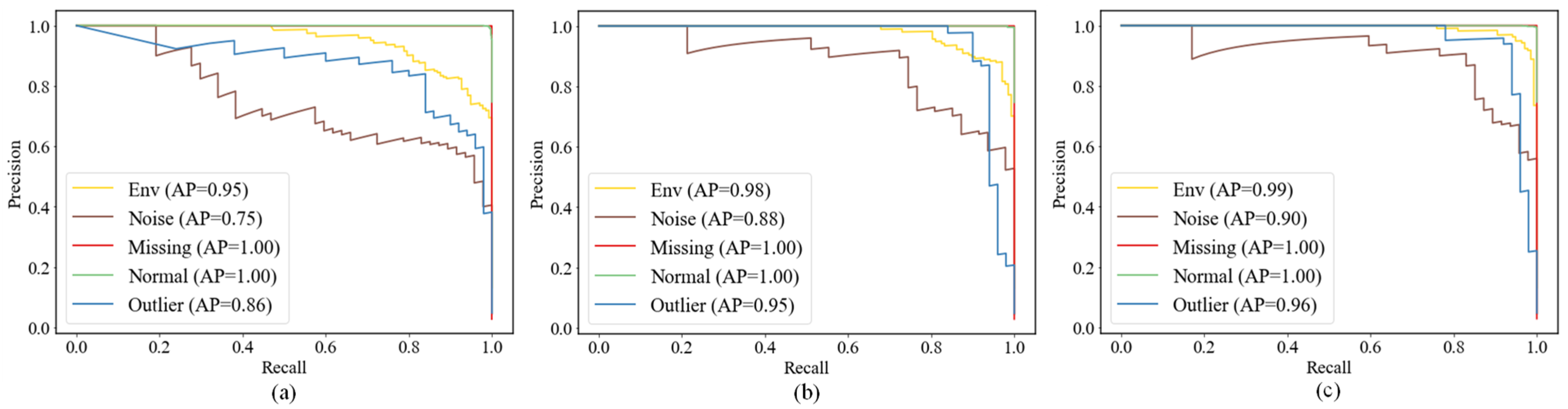 | Precision | Recall | Precision | Recall | Precision | Recall | |