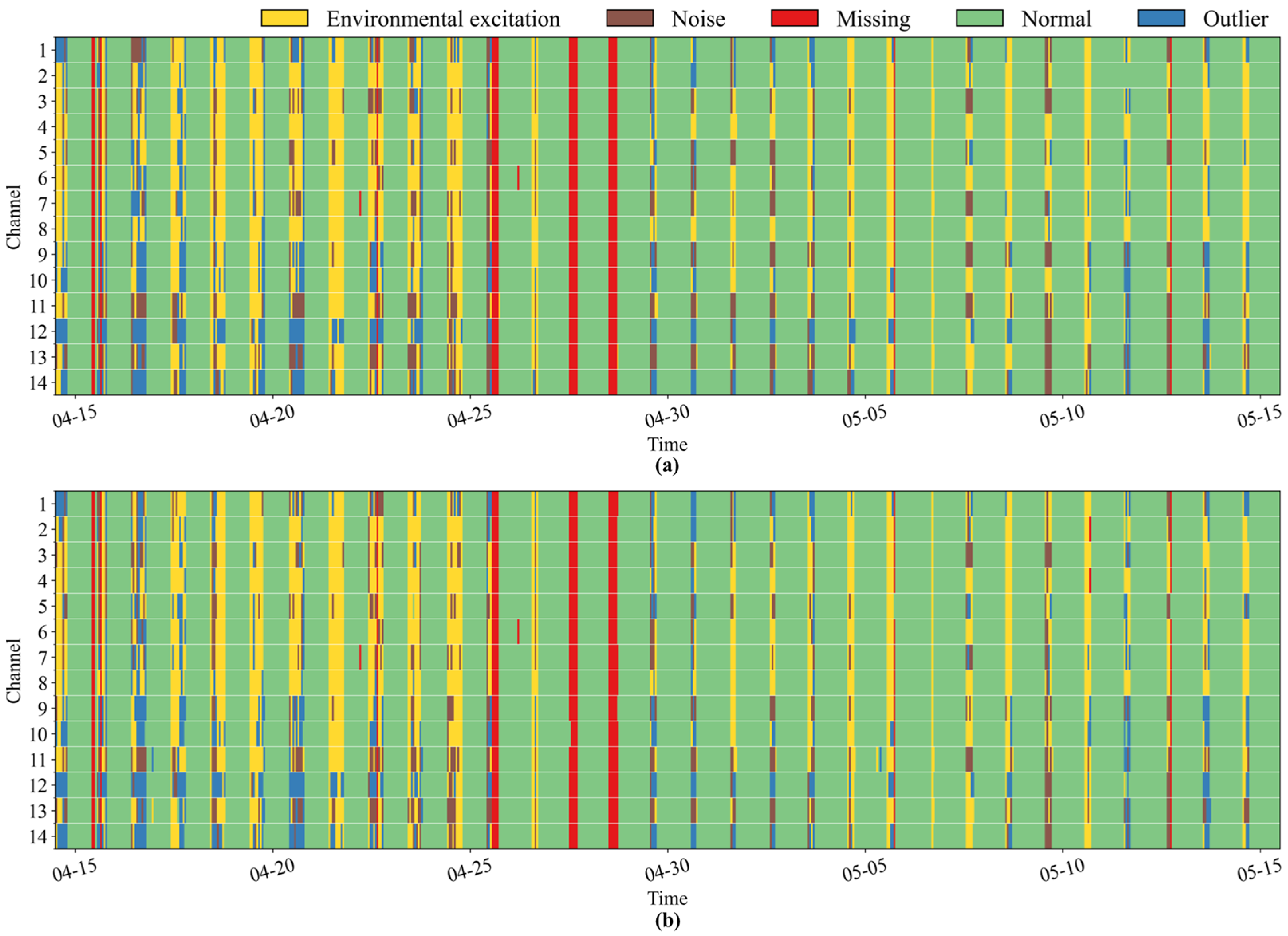 - The month-long diagnosis results show that the proposed framework can capture the overall category distribution and reveal representative spatiotemporal patterns of abnormal data, which is useful for large-scale data screening in practical monitoring tasks.