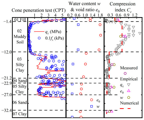 - Gao, Y.; Chen, Z.; Airey, D. Compression index versus natural water content relationships for China’s coastal soft clays. KSCE J. Civ. Eng. 2019, 23, 4611–4620. [Google Scholar] [CrossRef]