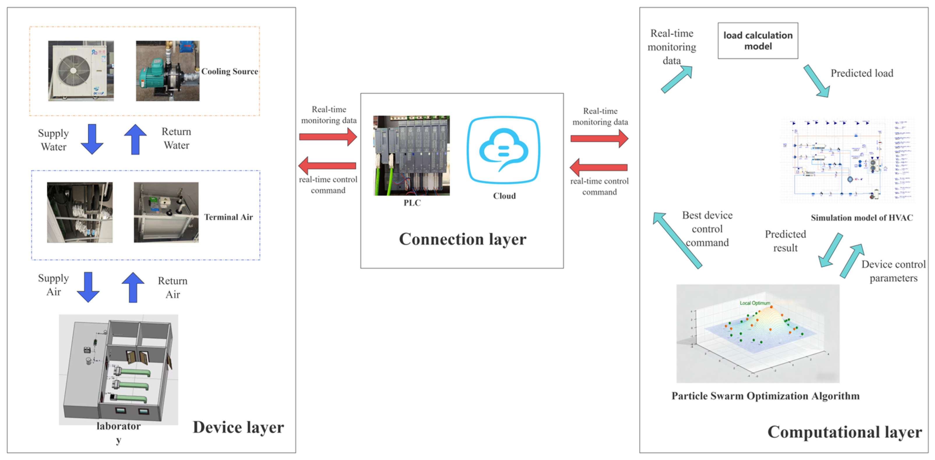 | Controller 1 | Cloud-connected PLC with field sensors | Thermal equilibrium theoretical model | Modelica model | Particle swarm optimization algorithm |