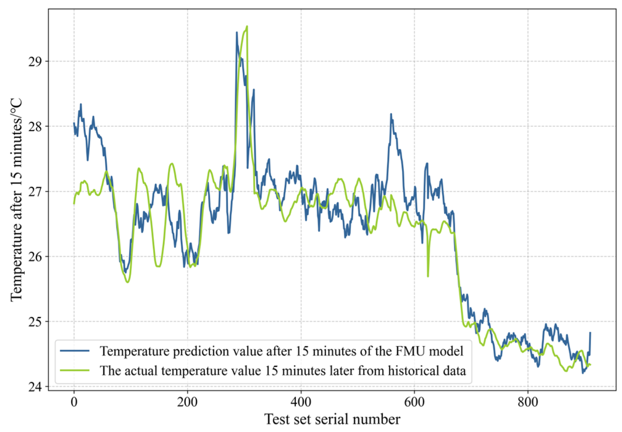 - Simulation execution: Based on the initialized state and averaged input parameters, a continuous 900 s (15 min) simulation was performed to generate temperature prediction sequences.