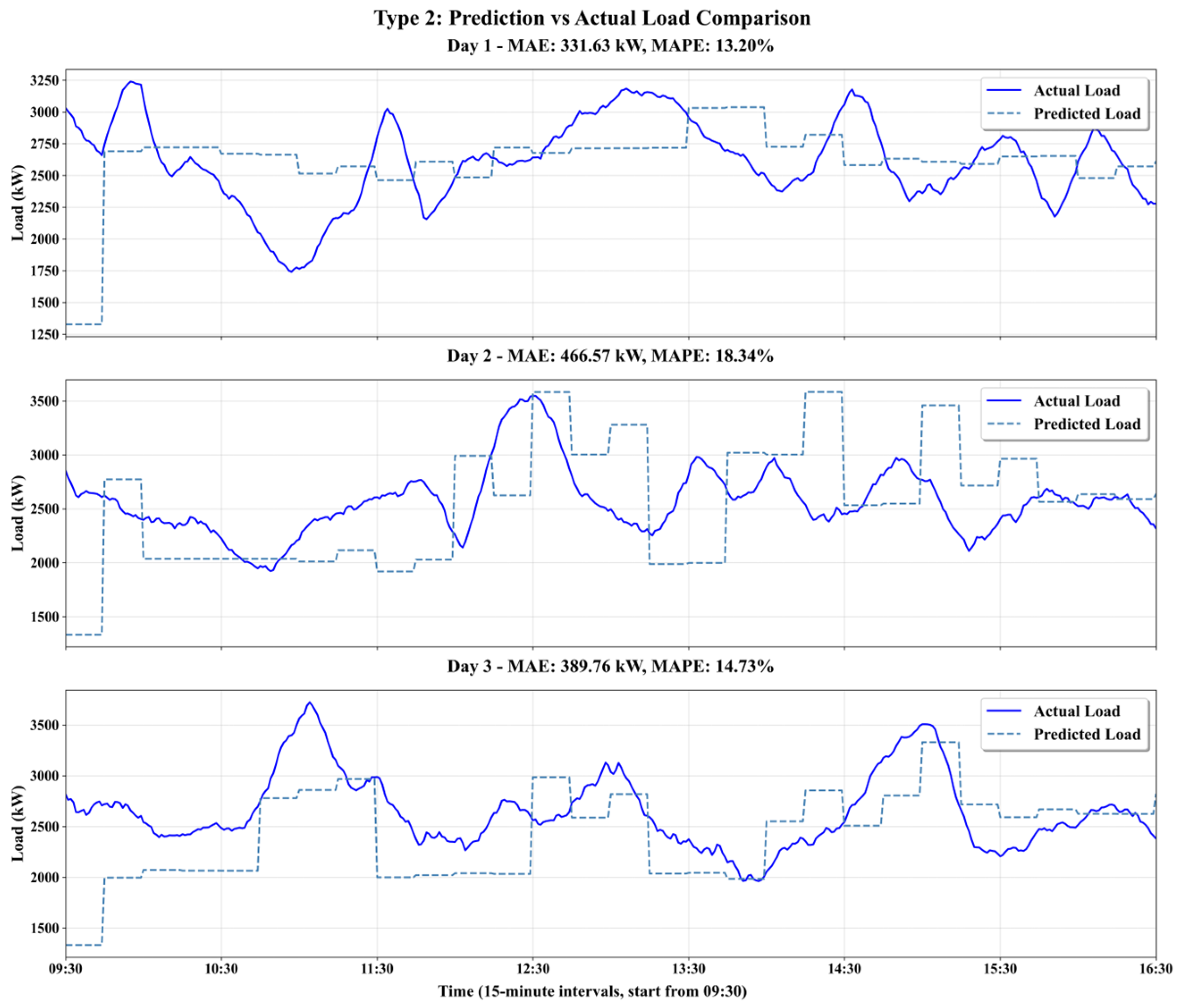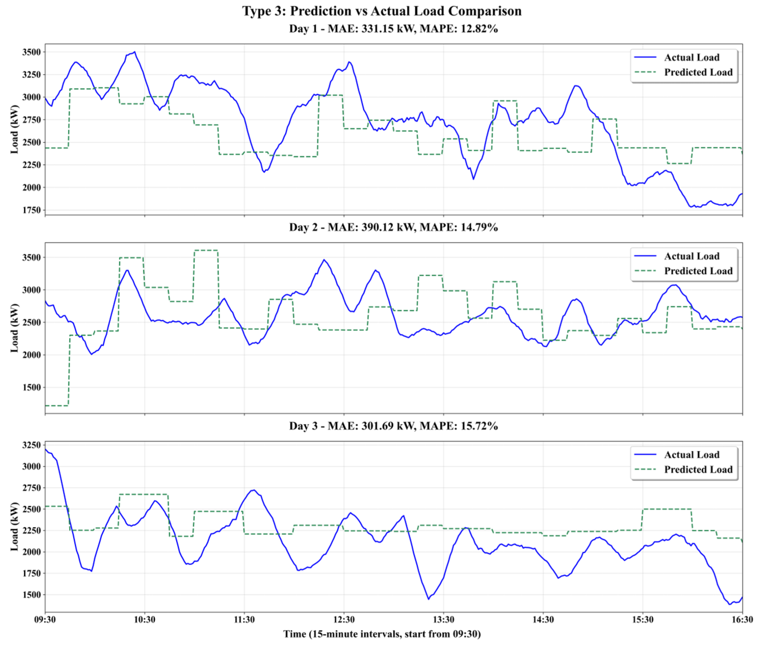 - The initial load estimate—provided by a data-driven predictor trained on historical data—is used to generate three candidate load values , and via correction coefficients.