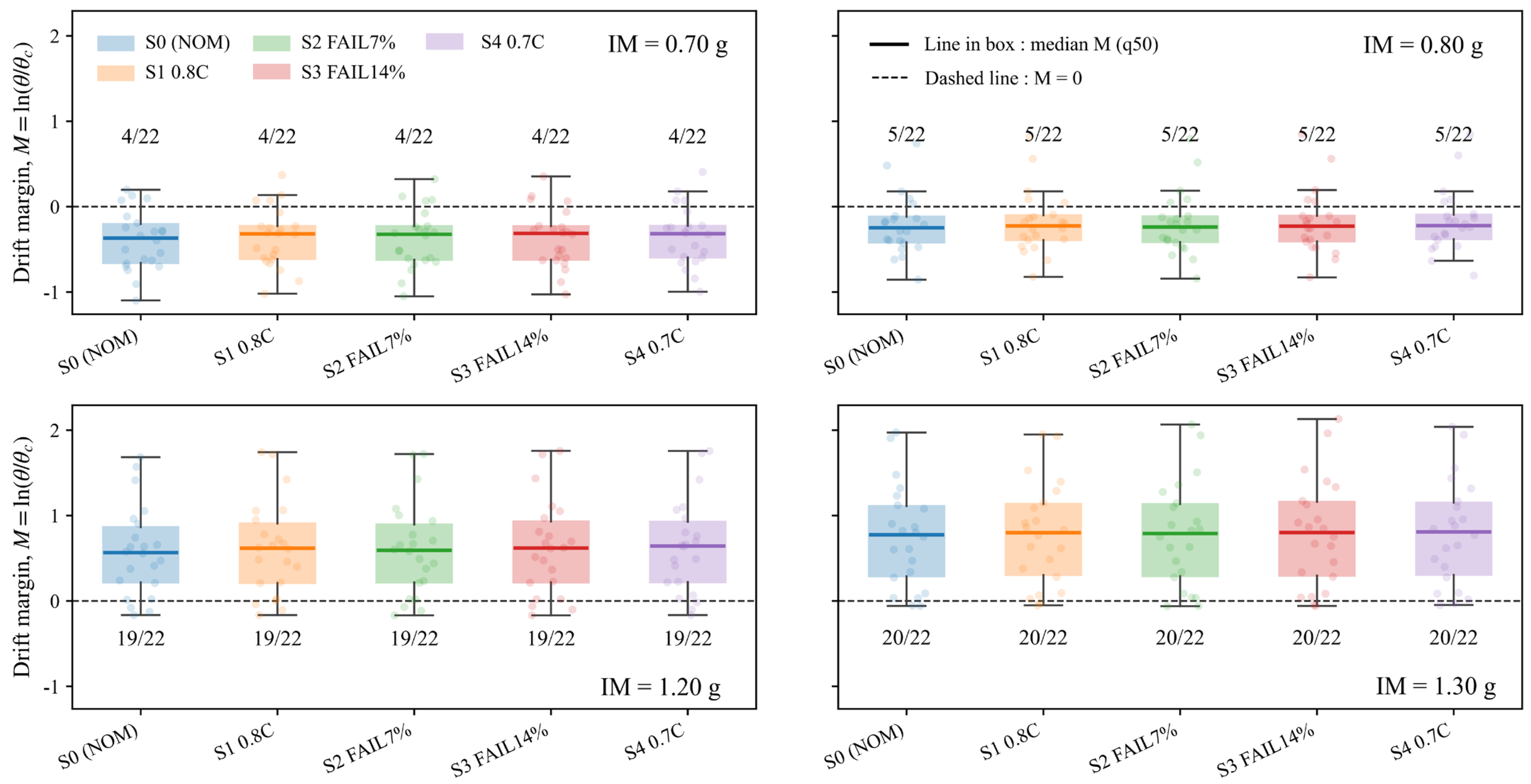 - Drift-margin channel model based on illustrative IDA responses and the normalized, log-transformed drift margin derived from non-collapse responses.