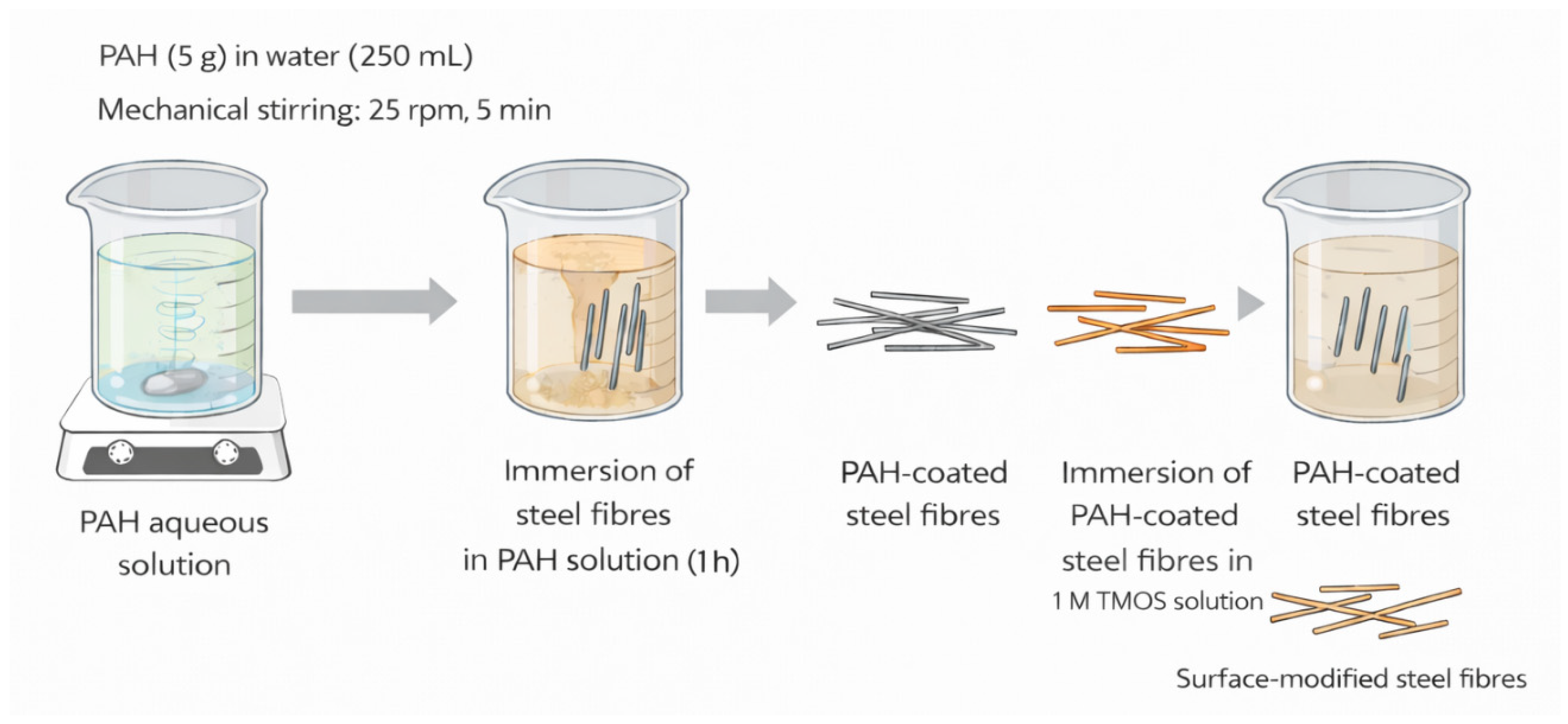 - Wang, L.; Xu, J.; Wang, J.; Li, Q.; Wang, H.; Li, D.; Fang, Y. Biomimetic silica coating for steel fibers: A low-cost strategy to enhance interfacial bonding in cementitious composites. Constr. Build. Mater. 2025, 492, 142924. [Google Scholar] [CrossRef]