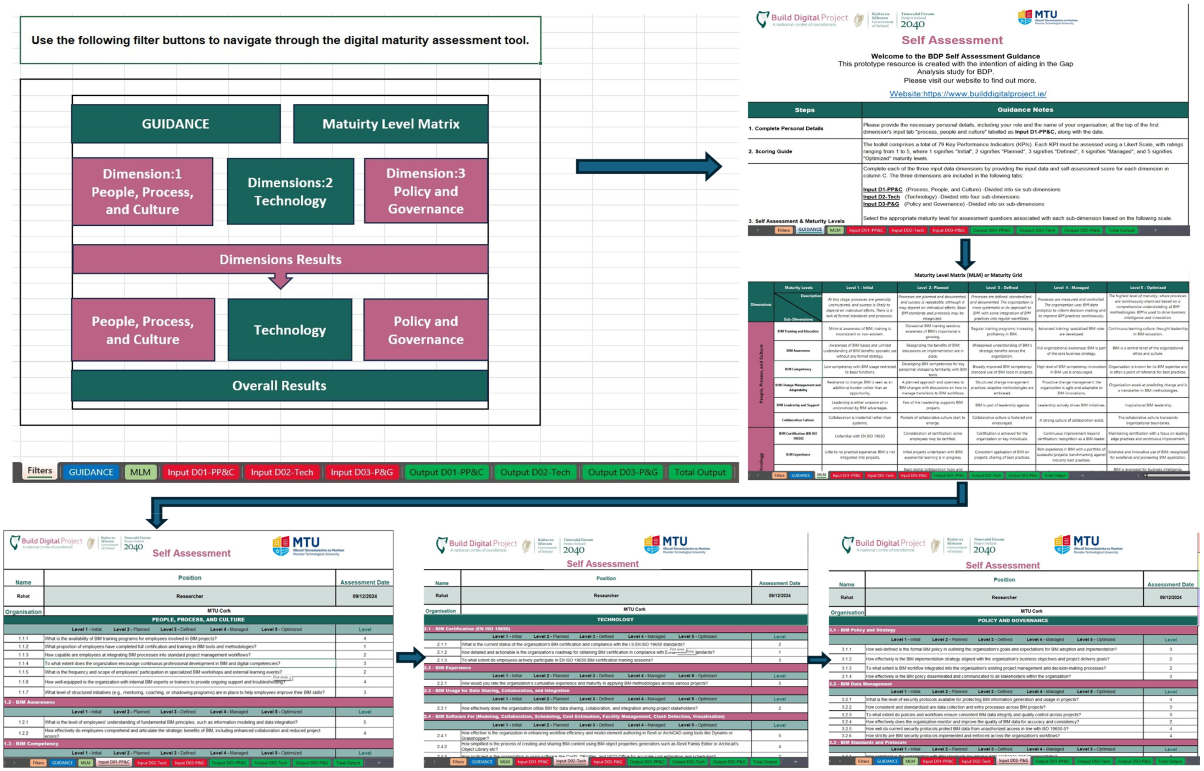 - Development of a maturity level matrix to link assessment questions to sub-dimensions and maturity levels.