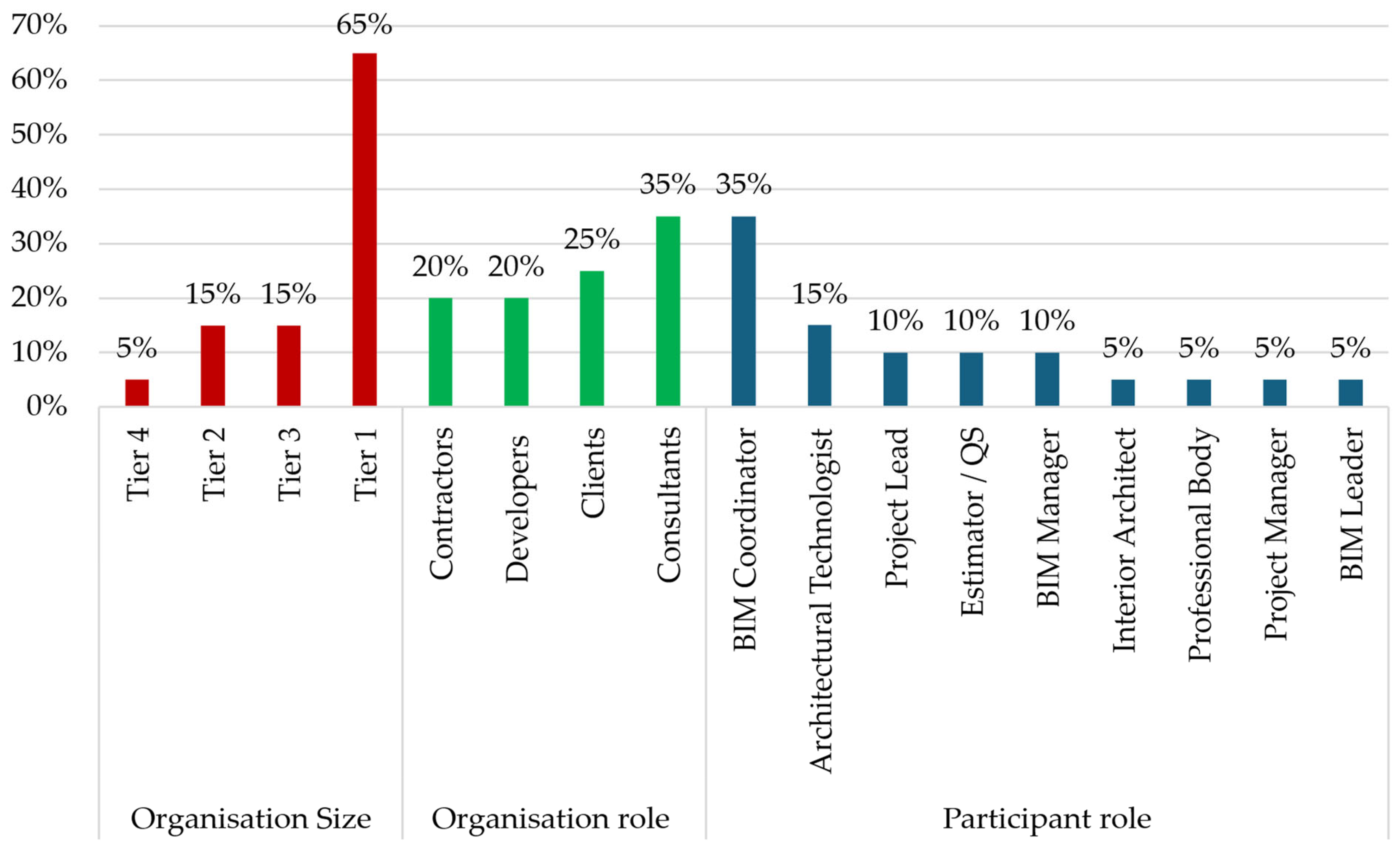 - McAuley, B.; Hore, A.V.; West, R.P. The Irish Construction Industry’s State of Readiness for a BIM Mandate in 2020. In Proceedings of the Civil Engineering Research in Ireland 2020 Conference, Cork, Ireland, 27–28 August 2020. [Google Scholar]