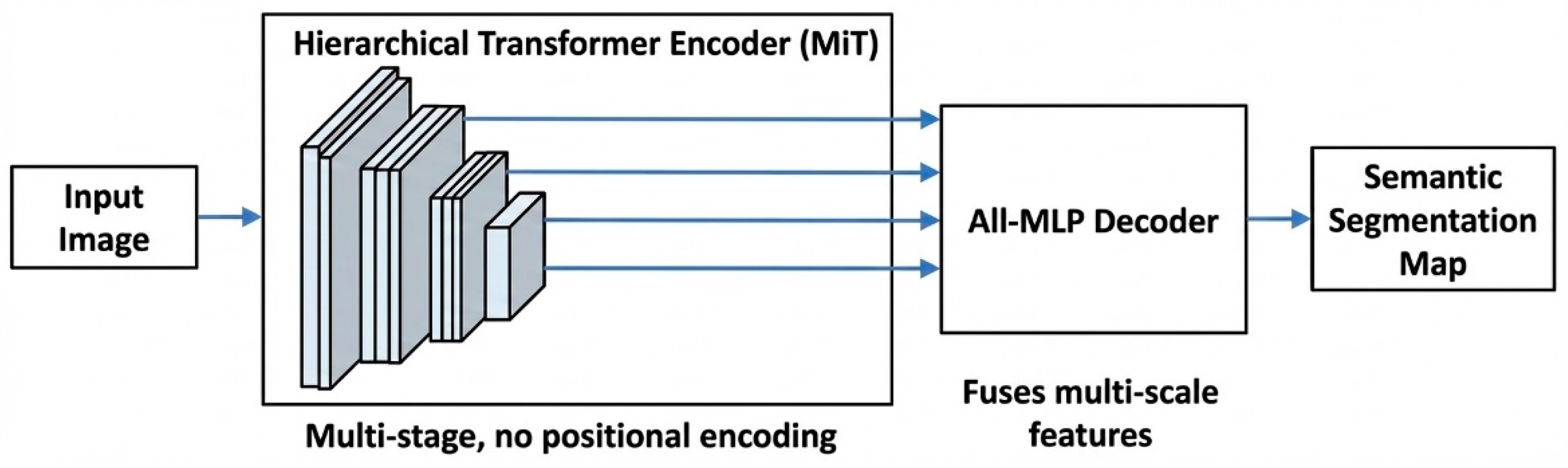 Deep learning approaches for image segmentation can generally be categorized into convolutional neural networks (CNNs) and Transformer-based models. In recent years, Transformer-based methods have achieved rapid development and widespread adoption in semantic segmentation tasks. SegFormer [