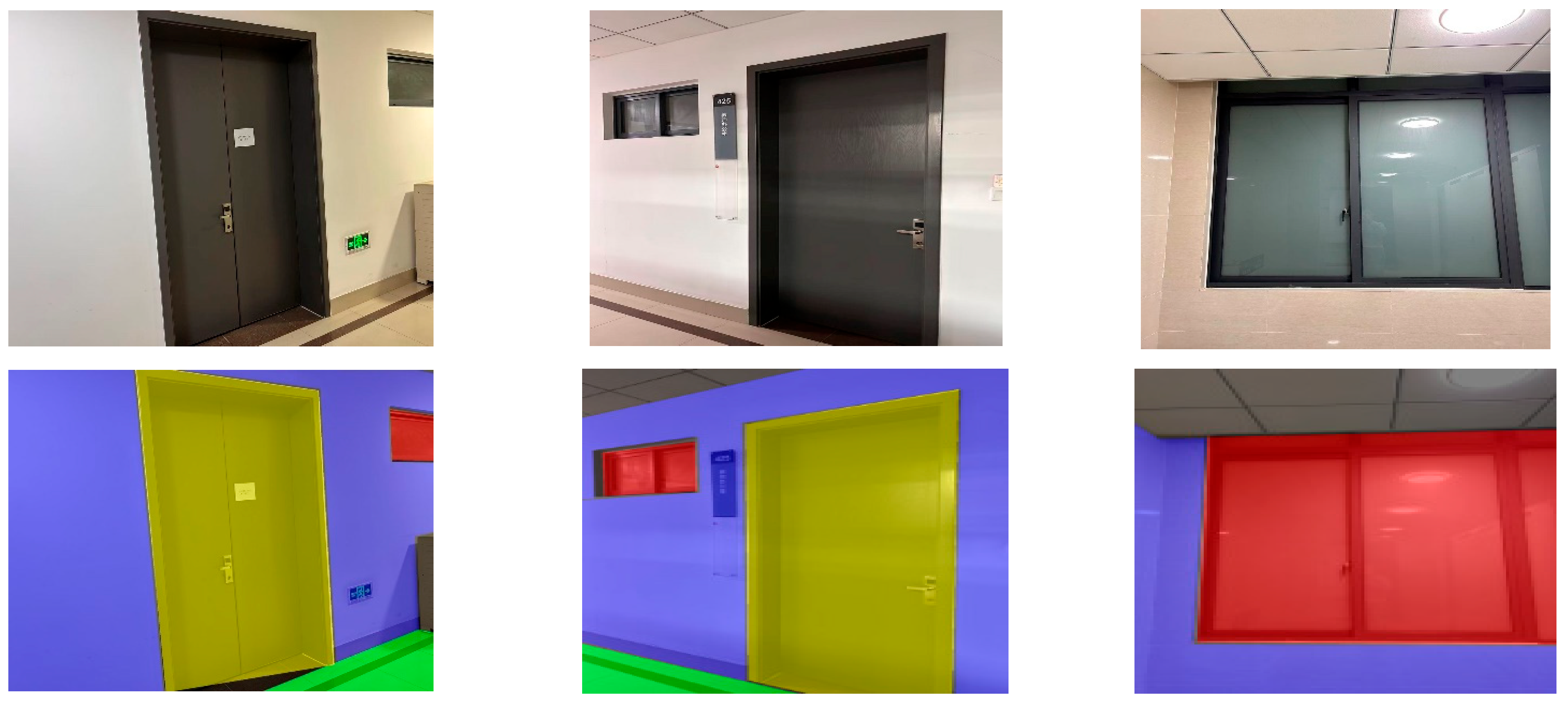 To build a real-world indoor component dataset for comparative analysis and mixed training, this study collected real images of components such as doors, windows, and walls within actual indoor environments. The images were captured using smartphones, covering various room types and interior styles to ensure diversity in both component categories and spatial contexts.
