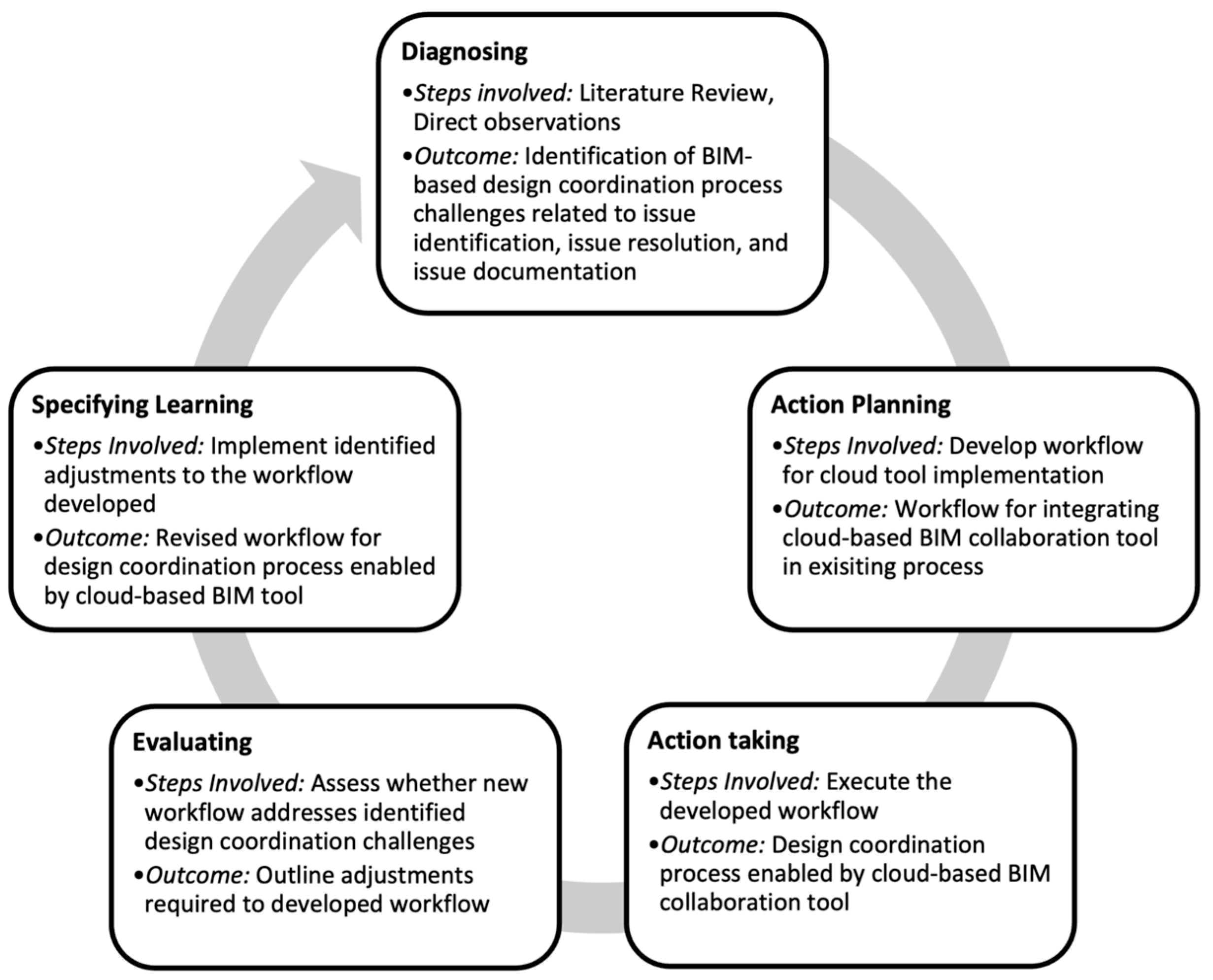 - Action Planning: BIM coordination inefficiencies were identified, and strategies for integrating the cloud-based tool were formulated.