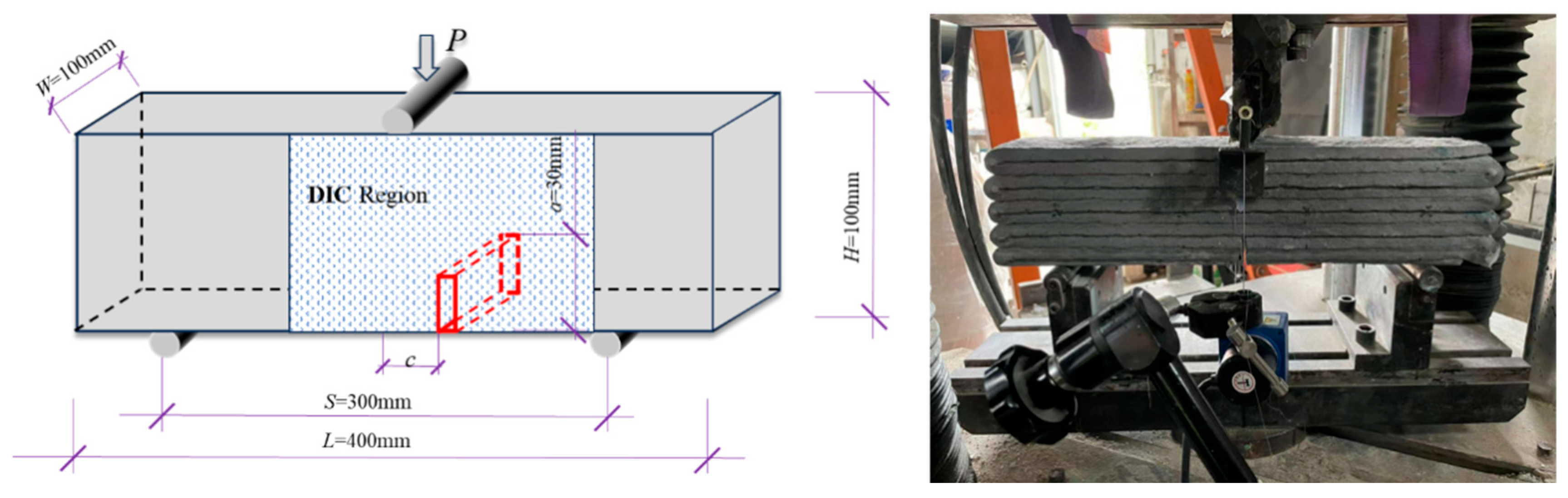 After printing, the four specimens were left undisturbed on the printing platform for one day before being placed in a constant-temperature water bath set at 60 °C for curing. Following the curing process, the specimens were subjected to cutting. To guide crack propagation, a pre-existing crack measuring 30 mm × 5 mm was introduced at the base of each specimen using a stone-cutting machine.