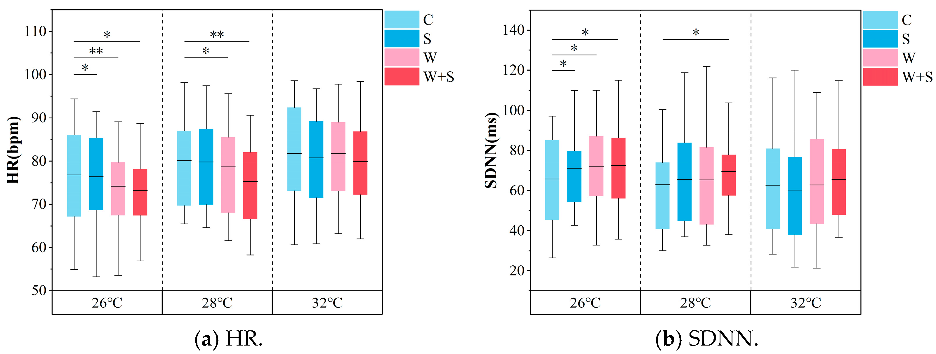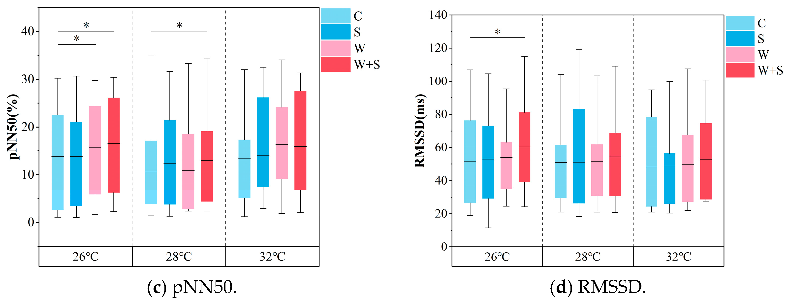 - Abellán-Aynés, O.; Manonelles, P.; Alacid, F. Cardiac Parasympathetic Withdrawal and Sympathetic Activity: Effect of Heat Exposure on Heart Rate Variability. Int. J. Environ. Res. Public Health 2021, 18, 5934. [Google Scholar] [CrossRef] [PubMed]