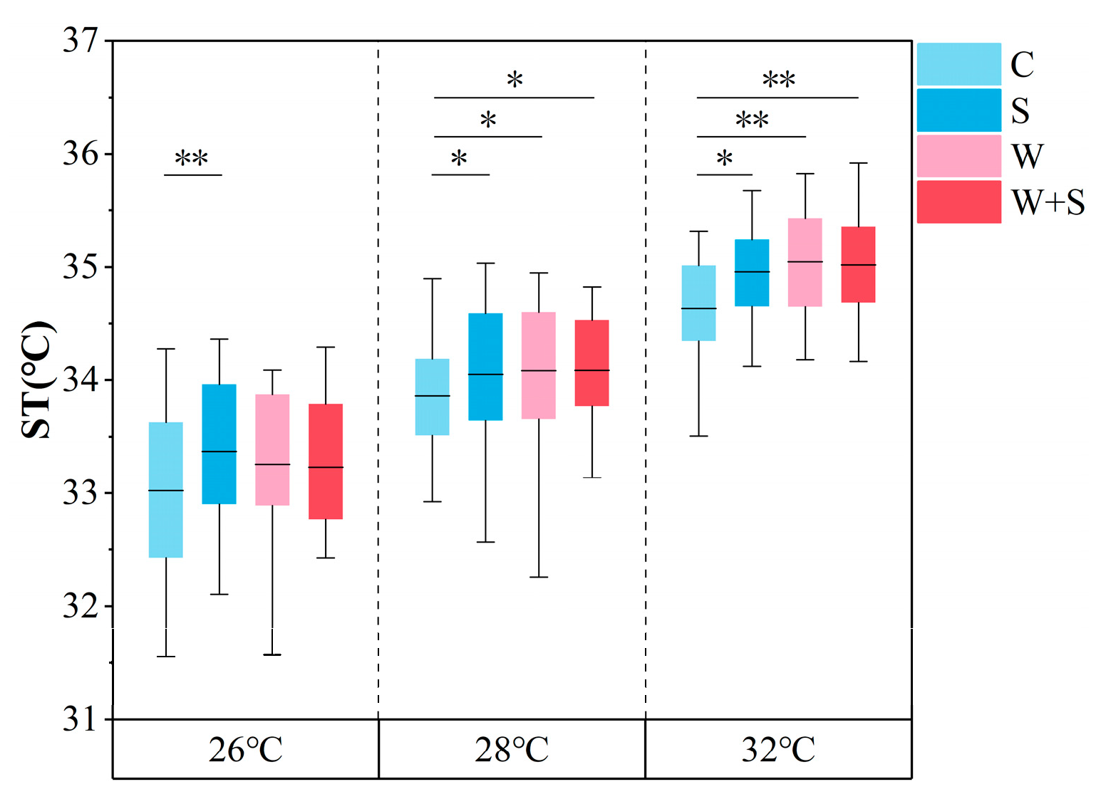 | Parameter | 26 °C Condition | 28 °C Condition | 32 °C Condition |