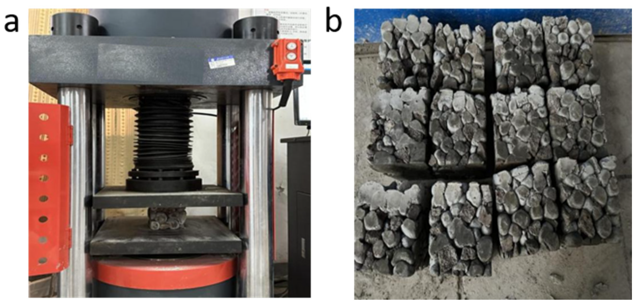 Finally, further studies should examine the long-term evolution of the pore structure and mechanical properties of VEC as plant roots grow and organic matter accumulates within the concrete matrix. Advanced techniques such as X-ray computed tomography and numerical modeling could be employed to better understand the dynamic interactions between roots and the concrete skeleton. Such research would contribute to the optimization and broader application of vegetation eco-concrete in sustainable infrastructure and ecological restoration projects.