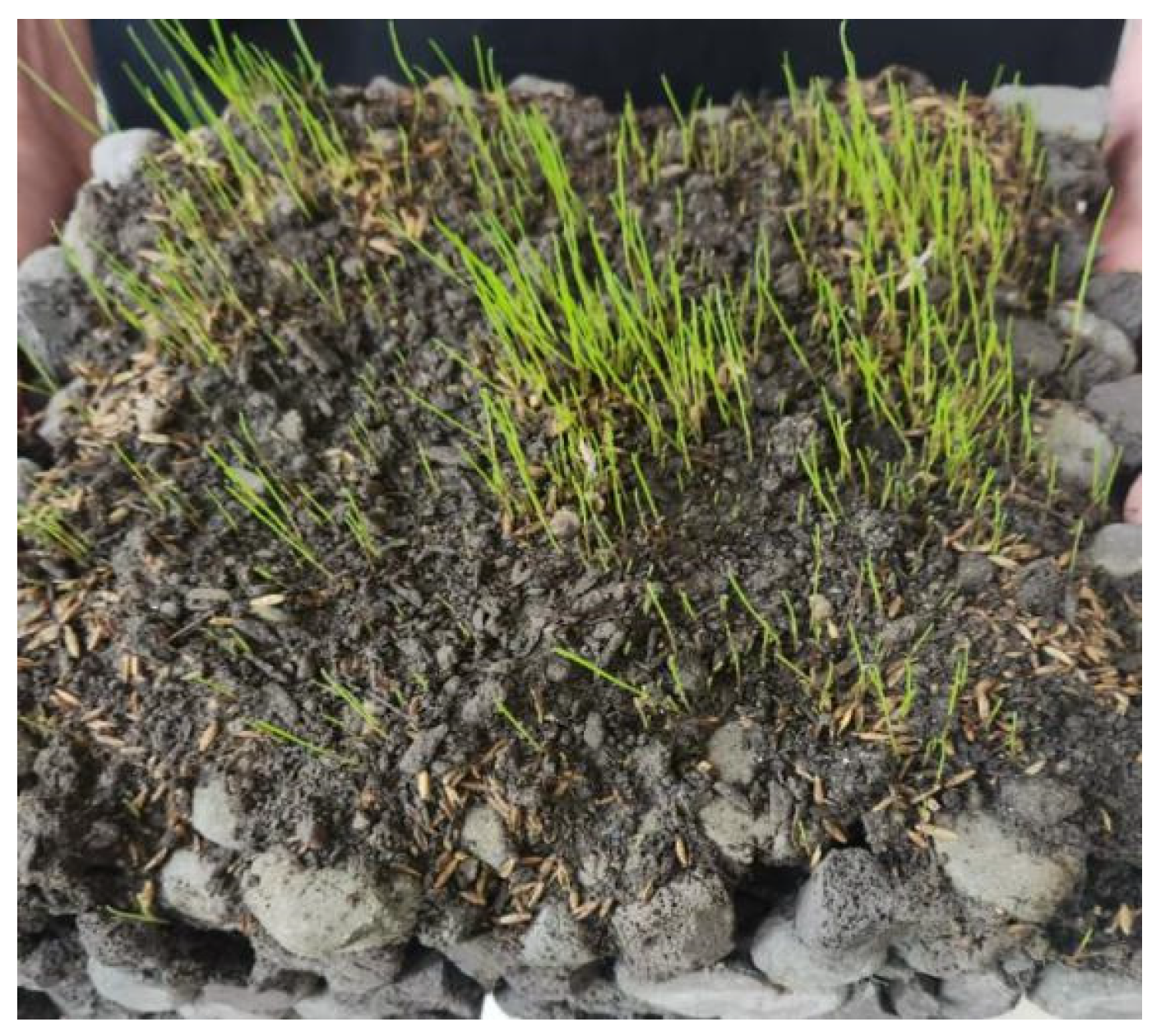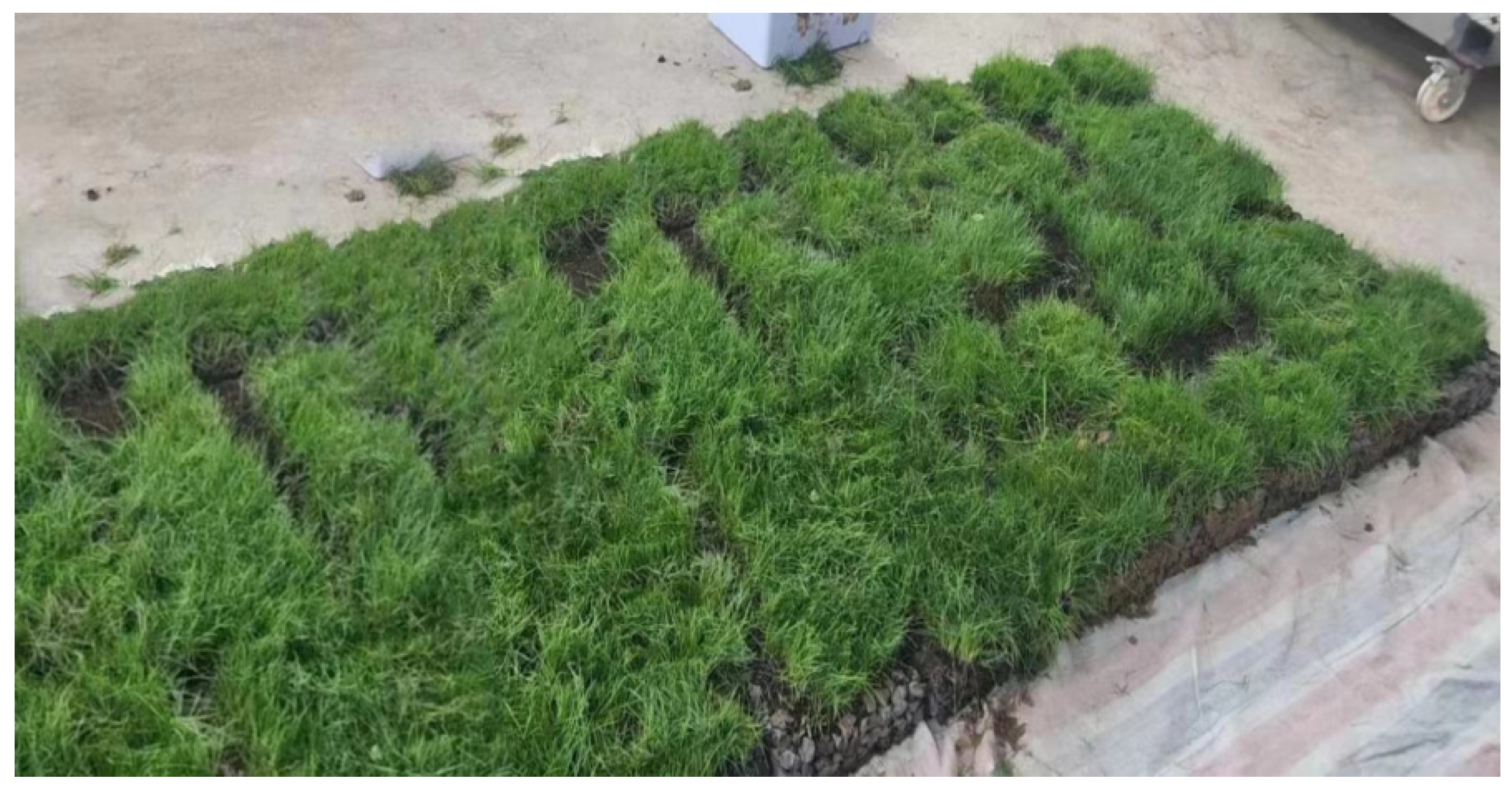 The differential performance of plant species observed in this study underscores the role of biological factors in the success of vegetation eco-concrete systems. Tall fescue and sheep fescue demonstrated rapid germination, vigorous aboveground growth, and well-developed root systems, making them well-suited for integration with VEC. These species are known for their strong adaptability, fibrous root architecture, and tolerance to suboptimal soil conditions, which likely contributed to their superior performance. From the perspective of previous ecological restoration studies, the compatibility between plant root morphology and substrate structure is a decisive factor in vegetation establishment. The interconnected pore network of VEC favors species with fine, dense root systems capable of exploiting small pore spaces. The results of this study reinforce this principle and suggest that plant selection should be guided not only by climatic adaptability but also by root system characteristics. This has important implications for the design of vegetation eco-concrete systems tailored to specific ecological and engineering contexts.
