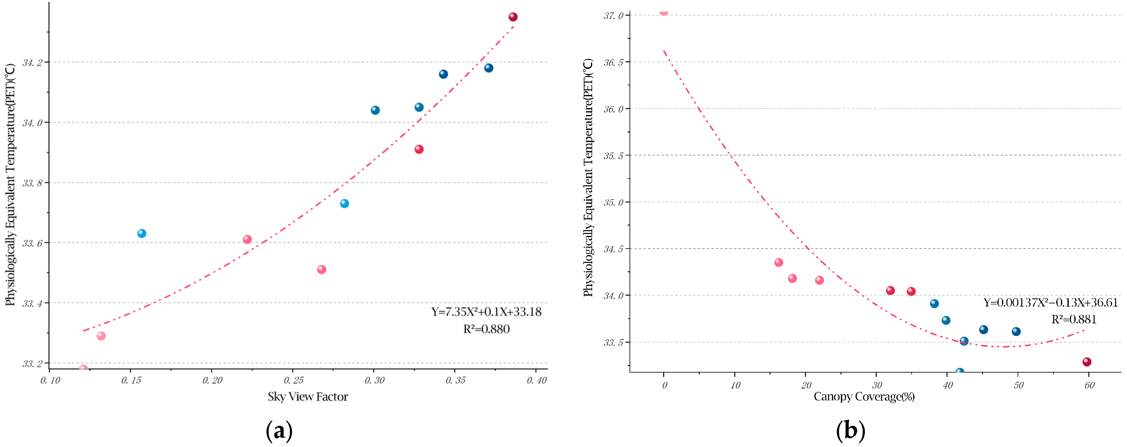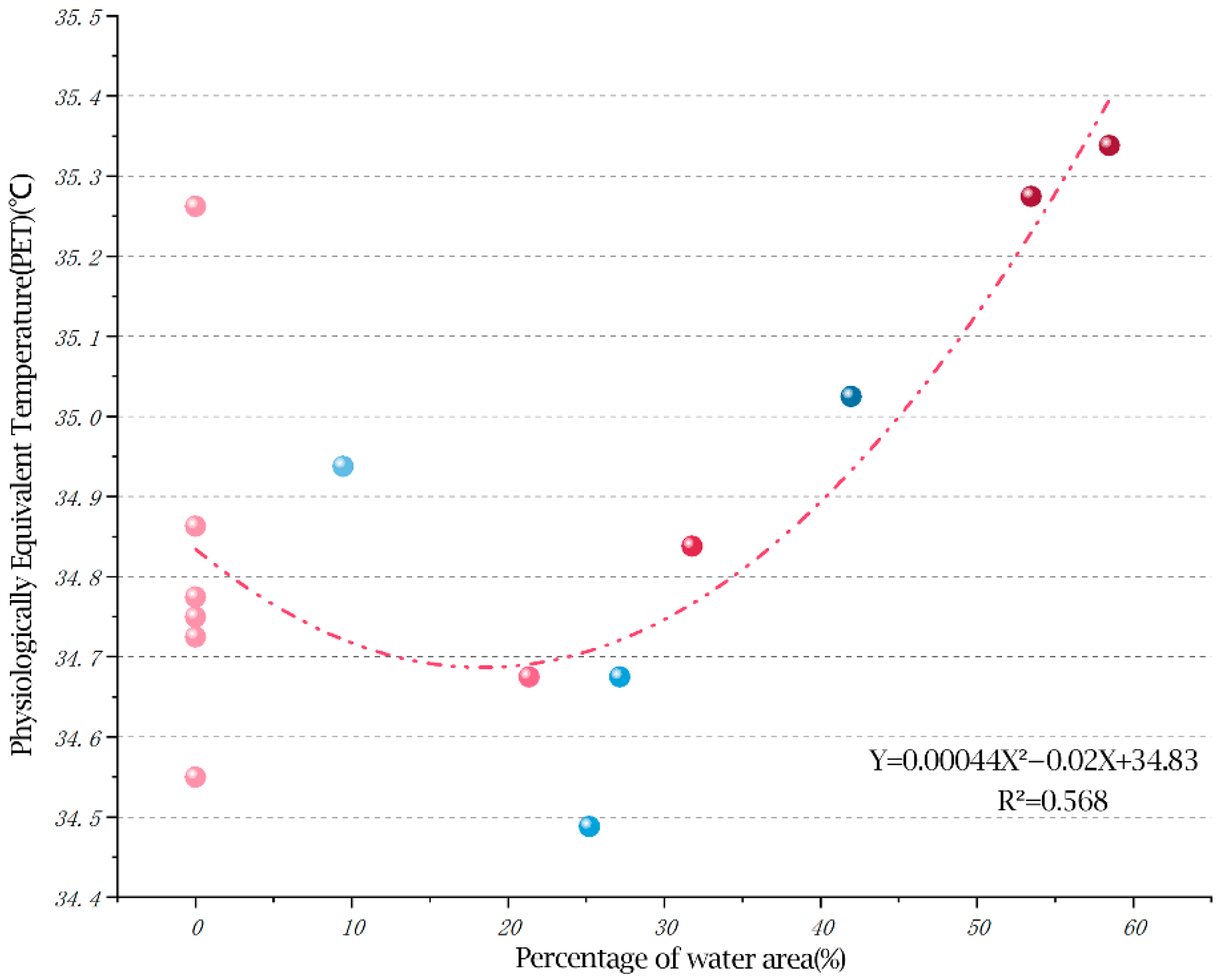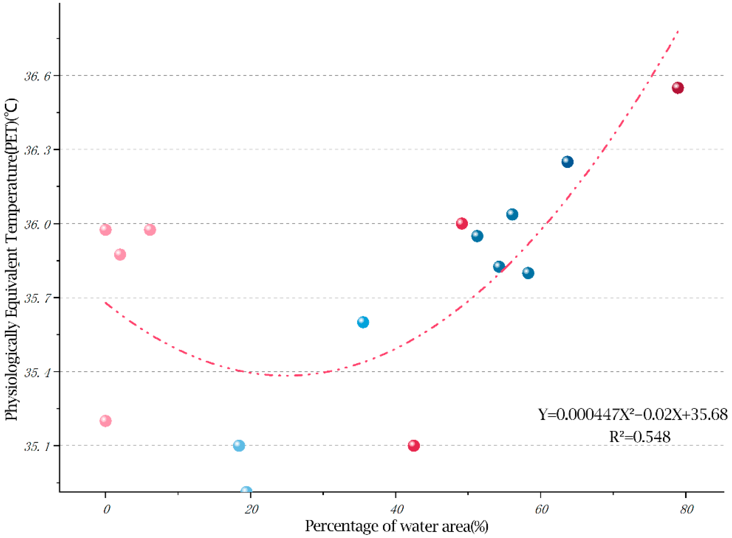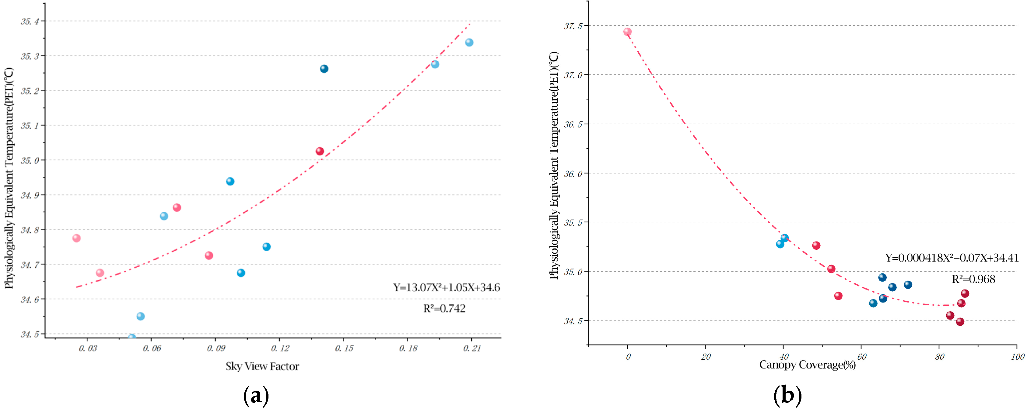 3.4.2. Secondary Regression Analysis of Physiological Equivalent Temperature (PET) and Landscape Factors