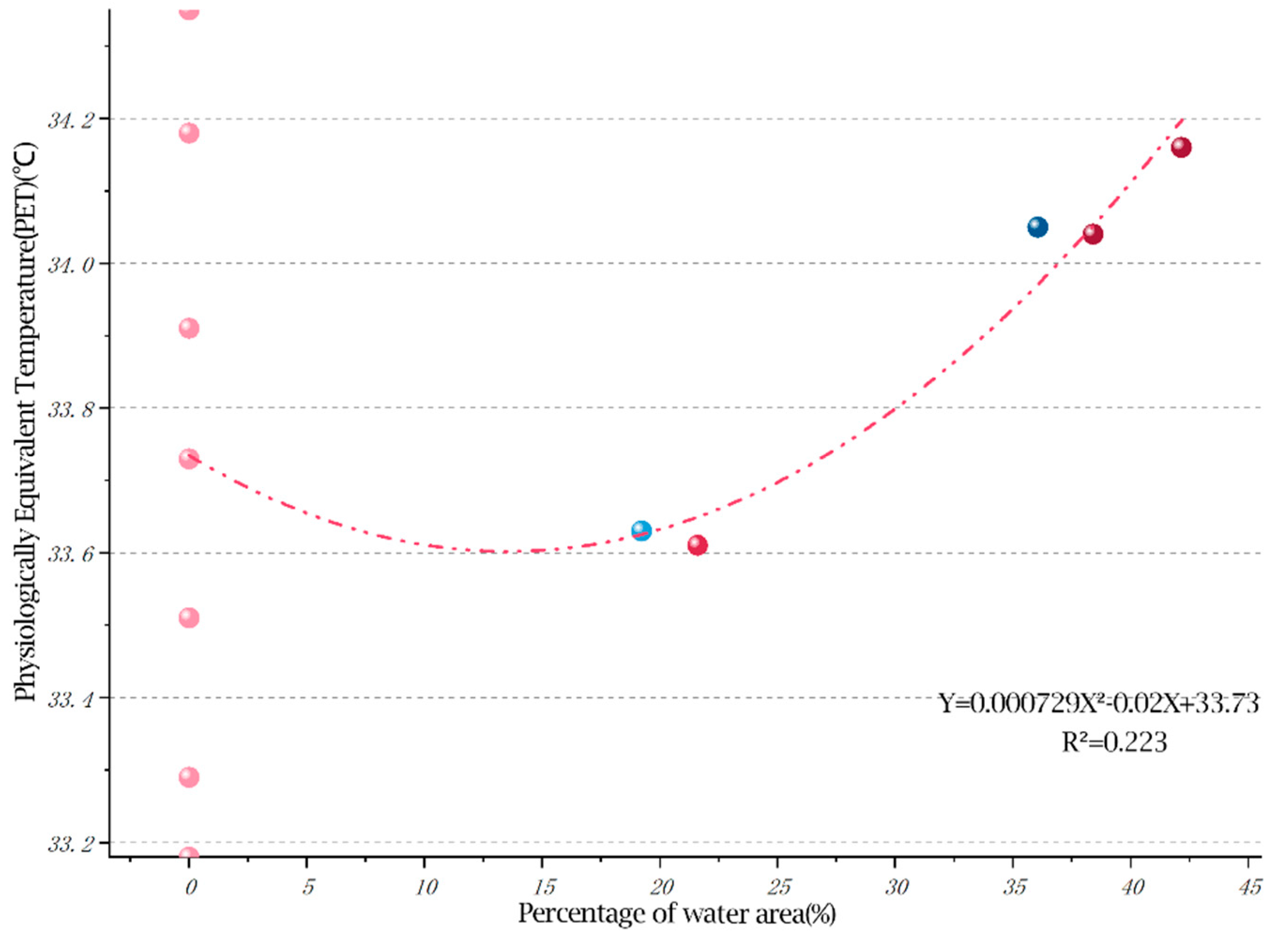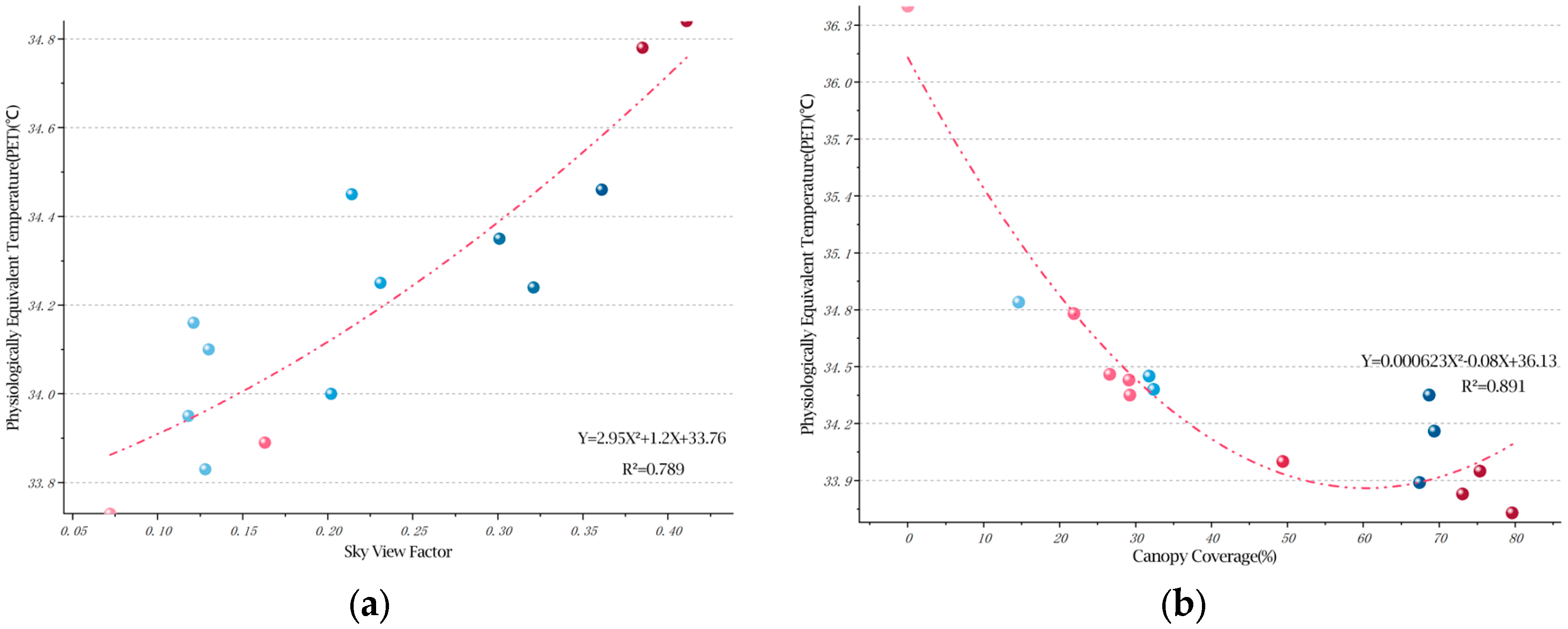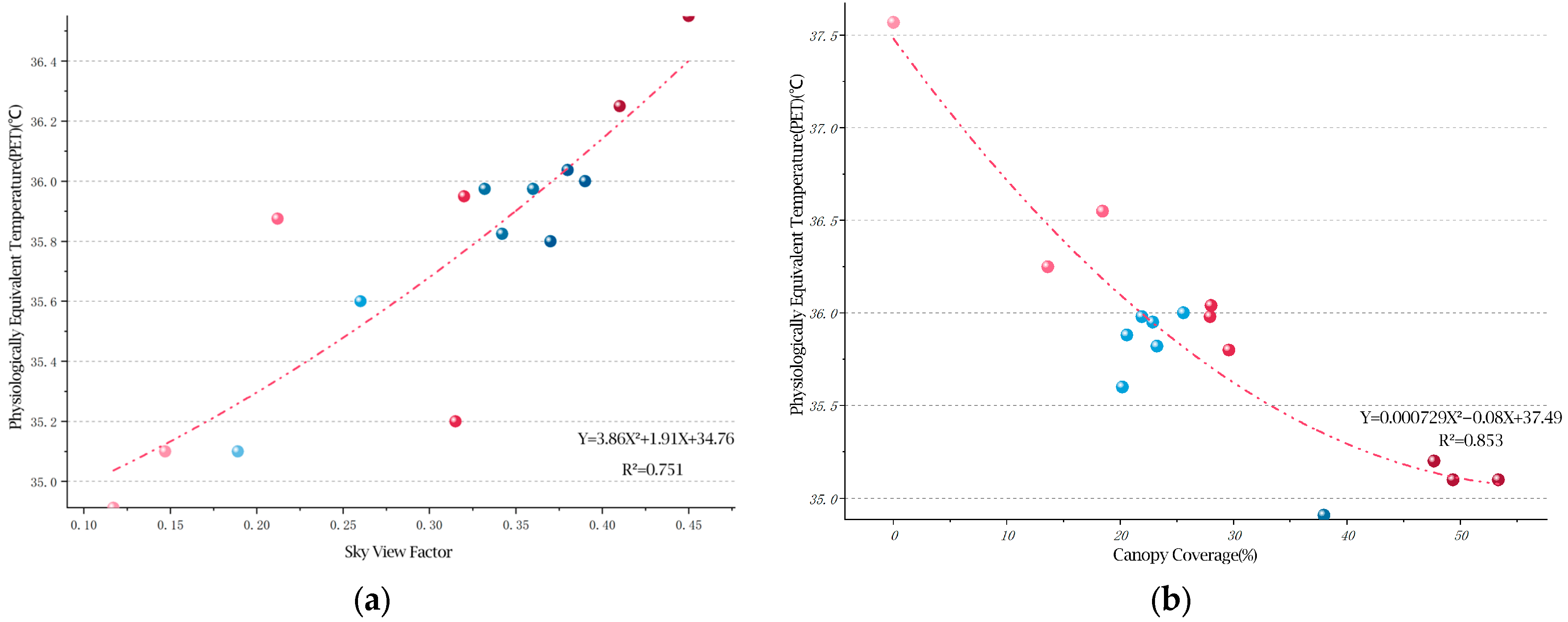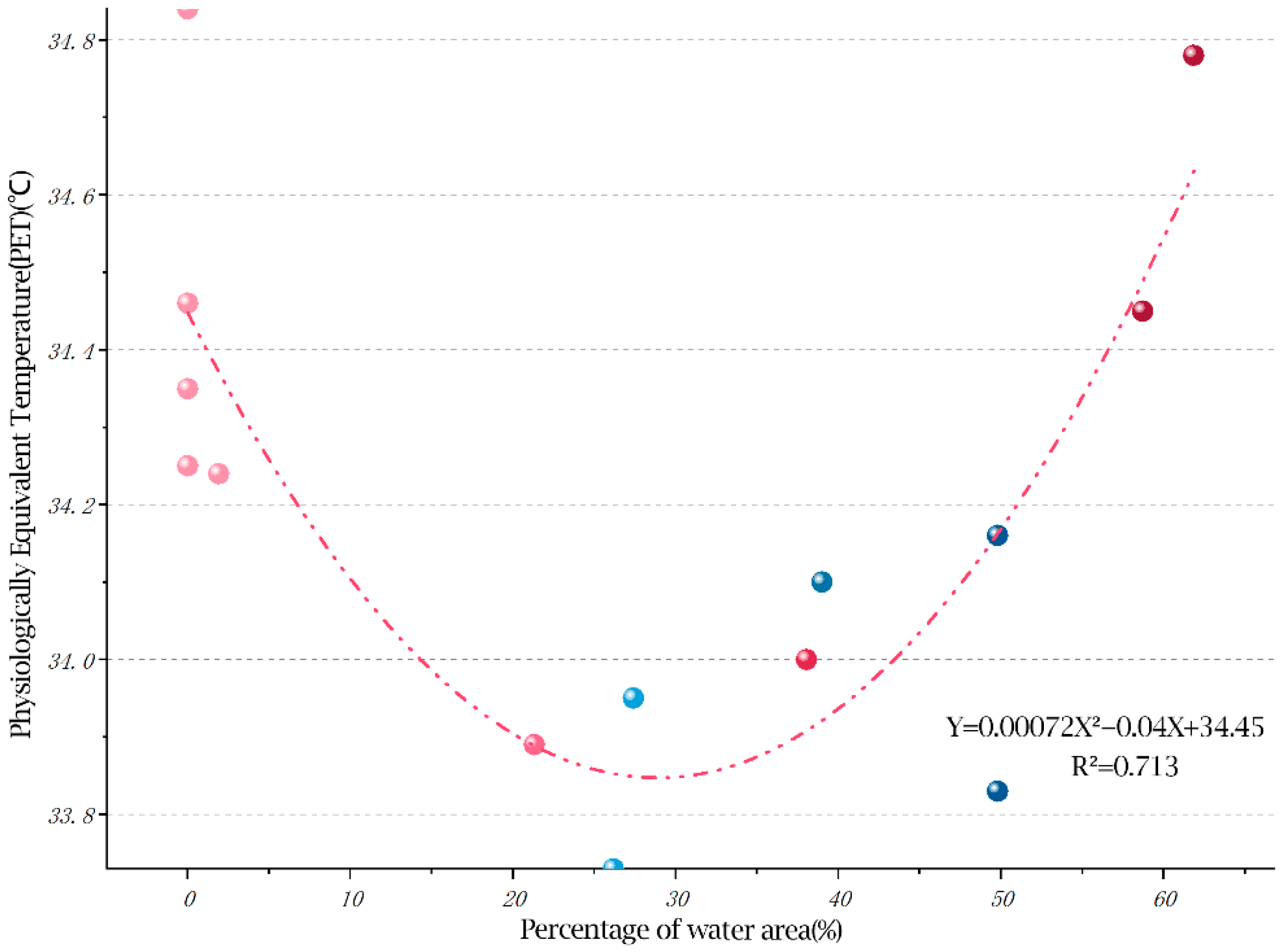 3.4.2. Secondary Regression Analysis of Physiological Equivalent Temperature (PET) and Landscape Factors