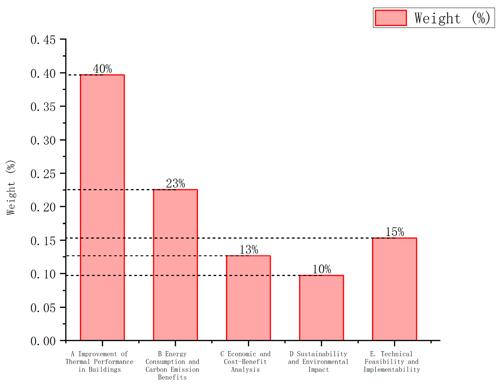 Based on the screened indicator system, the Analytic Hierarchy Process (AHP) was specifically applied in this study to quantify the relative importance of multi-level retrofit indicators under severe cold climate conditions. Rather than presenting a generic AHP procedure, the method was tailored to reflect the decision-making logic of envelope retrofit prioritization.