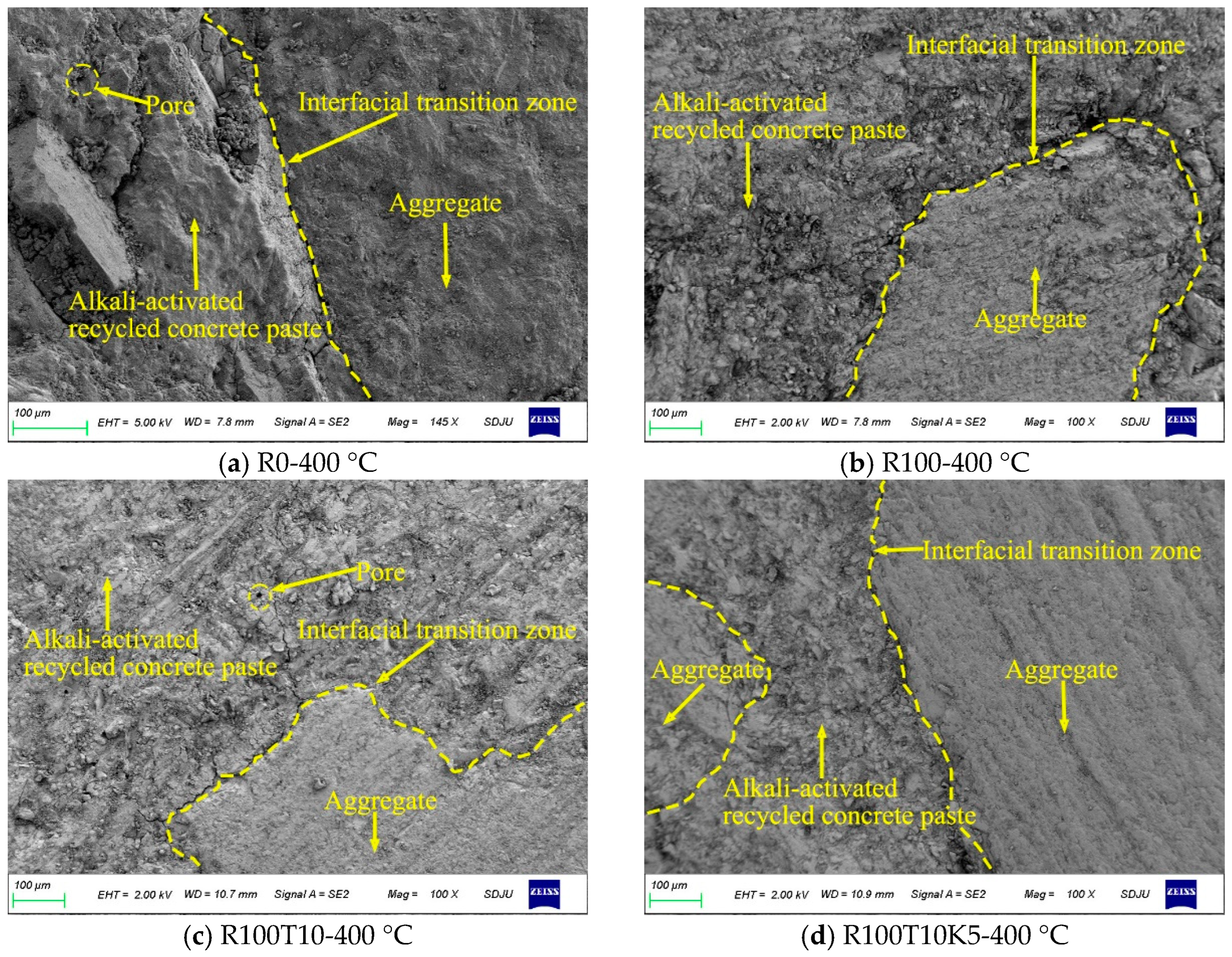 - Jiang, Y.; Tam, V.W.; Jiang, C.; Le, K.N. A review on mechanical properties and durability of recycled coarse aggregate concrete exposed to elevated temperatures. Renew. Sustain. Energy Rev. 2025, 217, 115730. [Google Scholar] [CrossRef]
