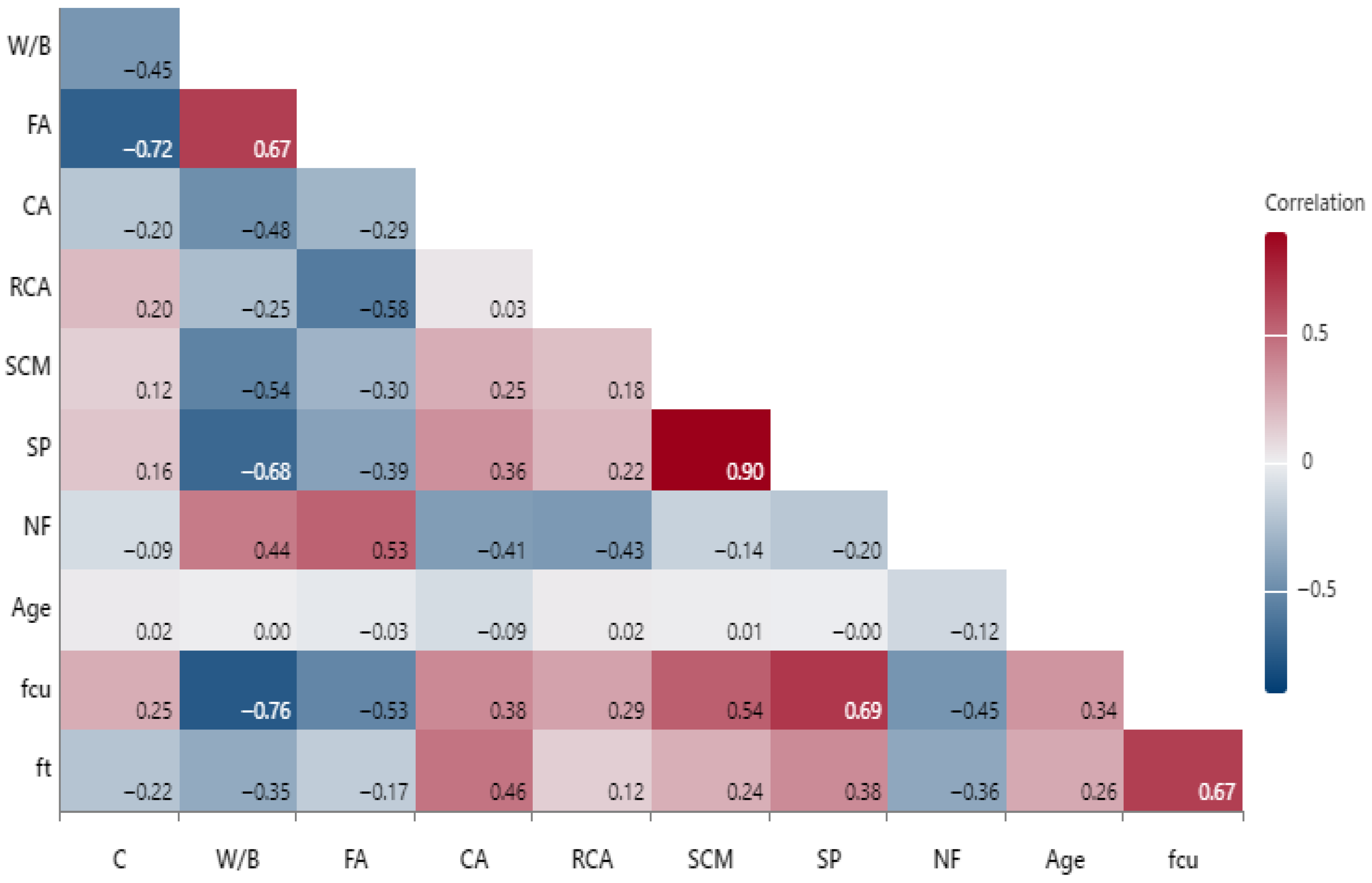 - For compressive strength: Prioritize strict water-to-binder ratio, e.g., (W/B ≤ 0.43 via SP optimization) and SCM amalgamation to refine pore structure.