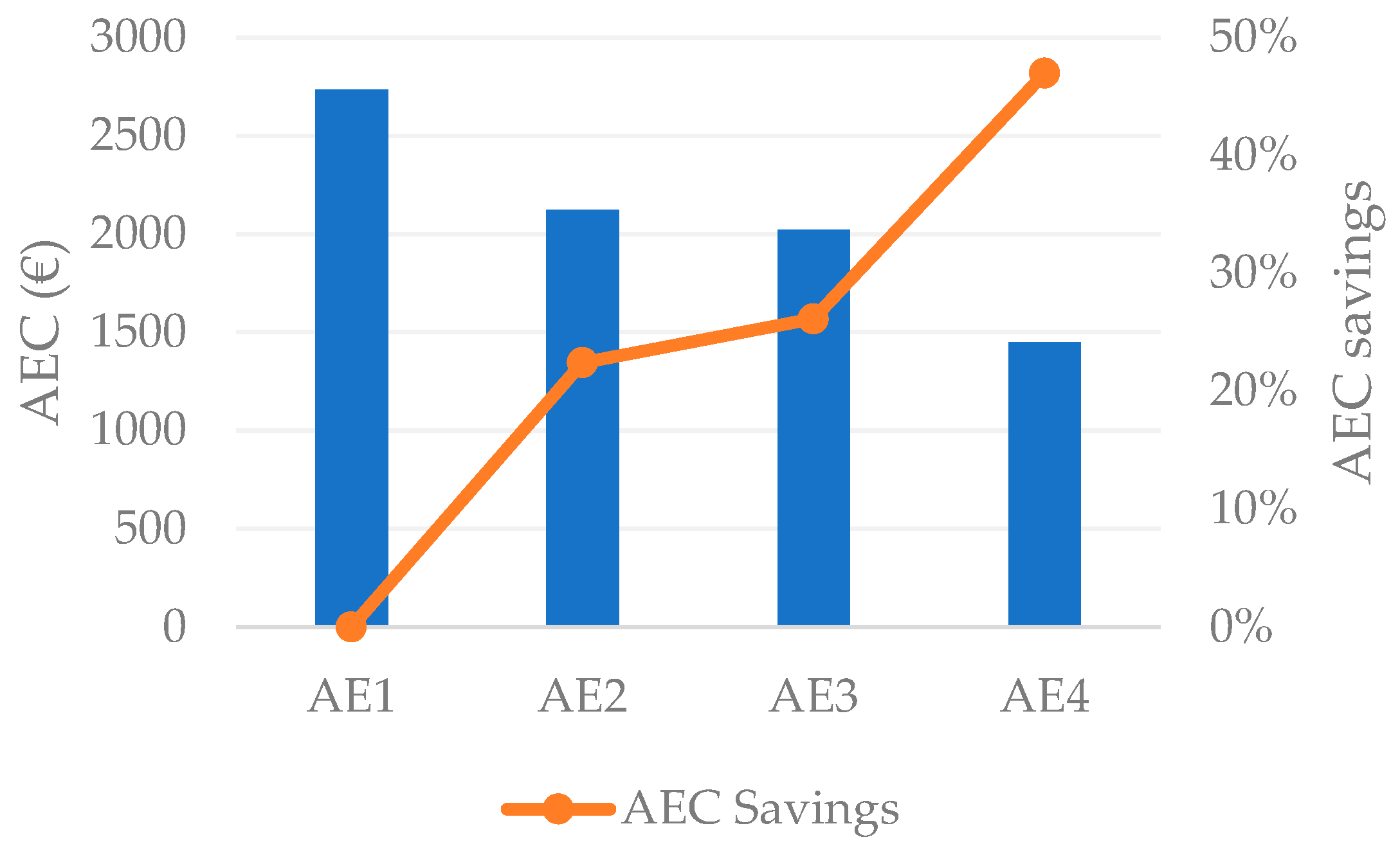 Table 5). The AEC becomes 22% lower if the external walls are thermally improved with ETICS compared to the original cladding solution before maintenance. The savings in AEC increase to 47% if the thermal improvement comprises the windows and roof, in addition to the external walls.