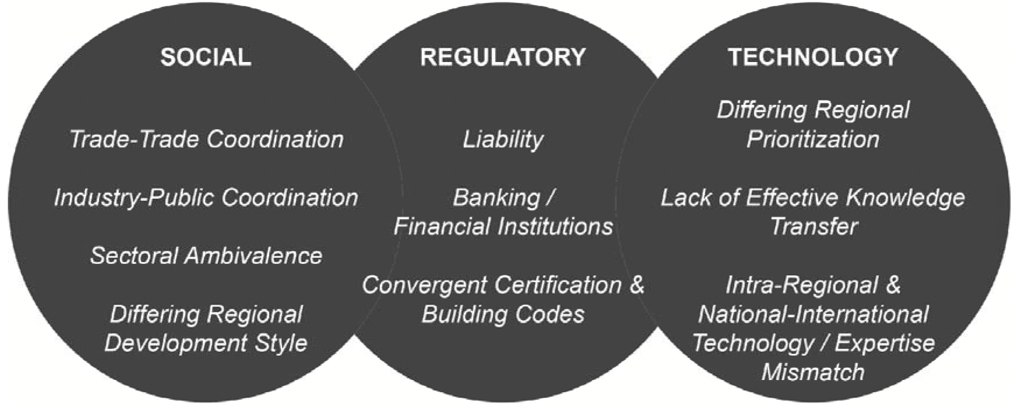 Unique to the Swiss context was the perception that domestically, there was not a lack of existing technologies and methods available to achieve sustainable construction and that converging building codes were a potential hindrance to atypical solutions. This latter challenge in particular highlights the notion of bundled boundary objects, which create standardized packages that although are not rigidly fixed provide: