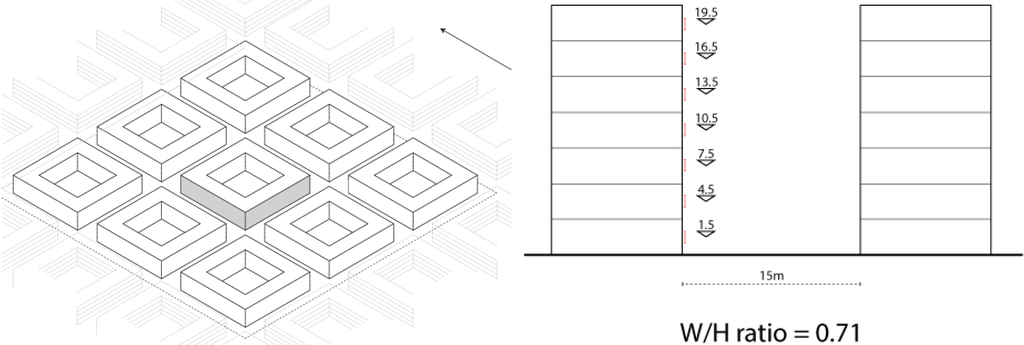 For the analysis of the building block discussed later in this study, the settings of the Radiance/Daysim simulations are displayed in Table 1. A ground plane and the surrounding buildings need to be included in the scene.