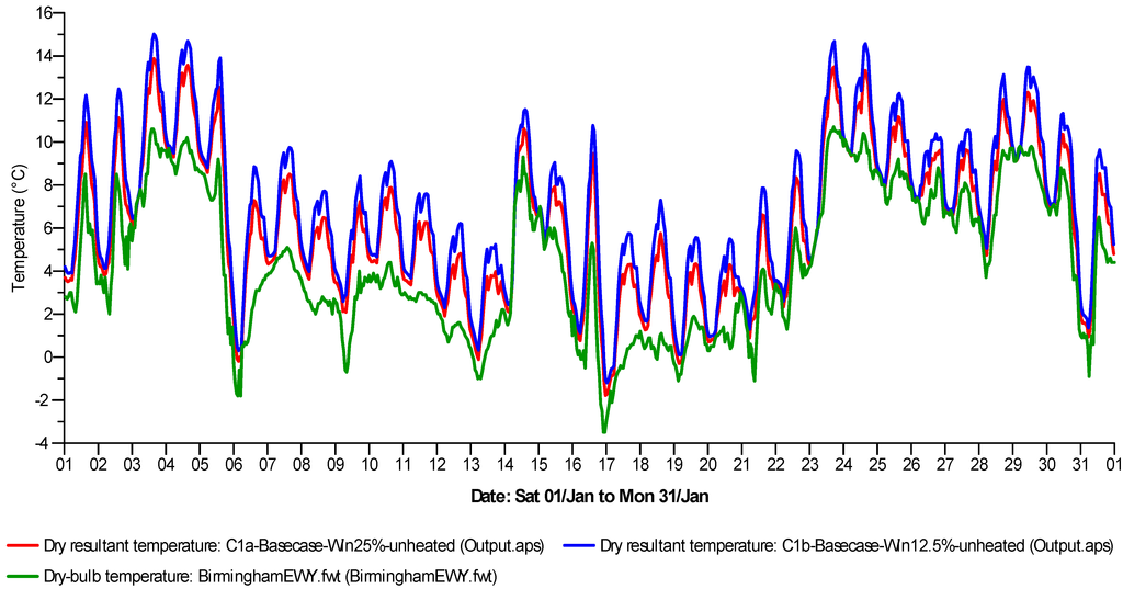 | Case 1b: Window 12.5%-unheated | −1.19 | 00:30, 17 Jan | 15.01 | 15:30, 03 Jan | 7.02 |