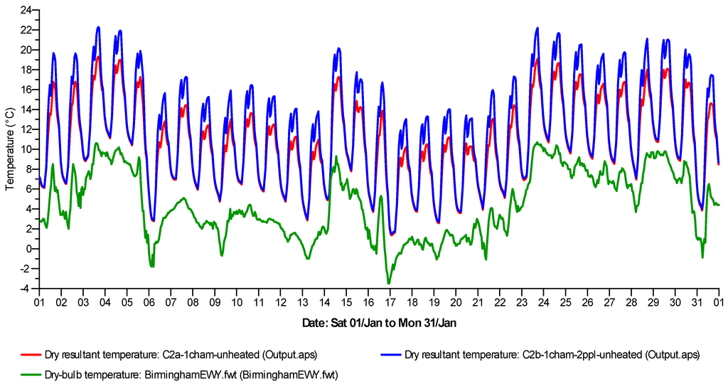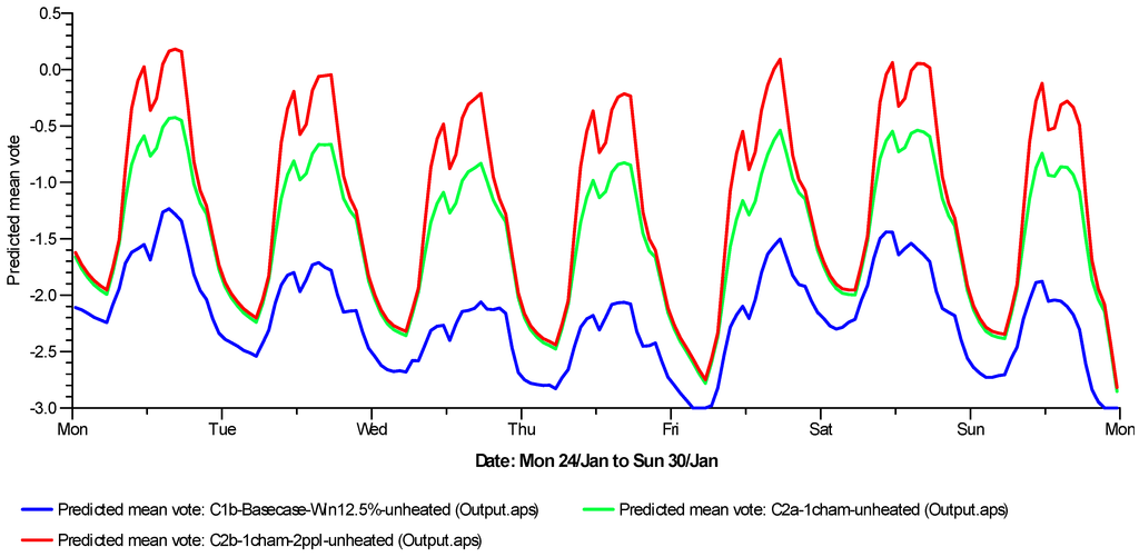 | Case 2b: 1 chamber, 2 people, unheated | 1.48 | 01:30, 17 Jan | 22.29 | 16:30, 3 Jan | 11.93 |