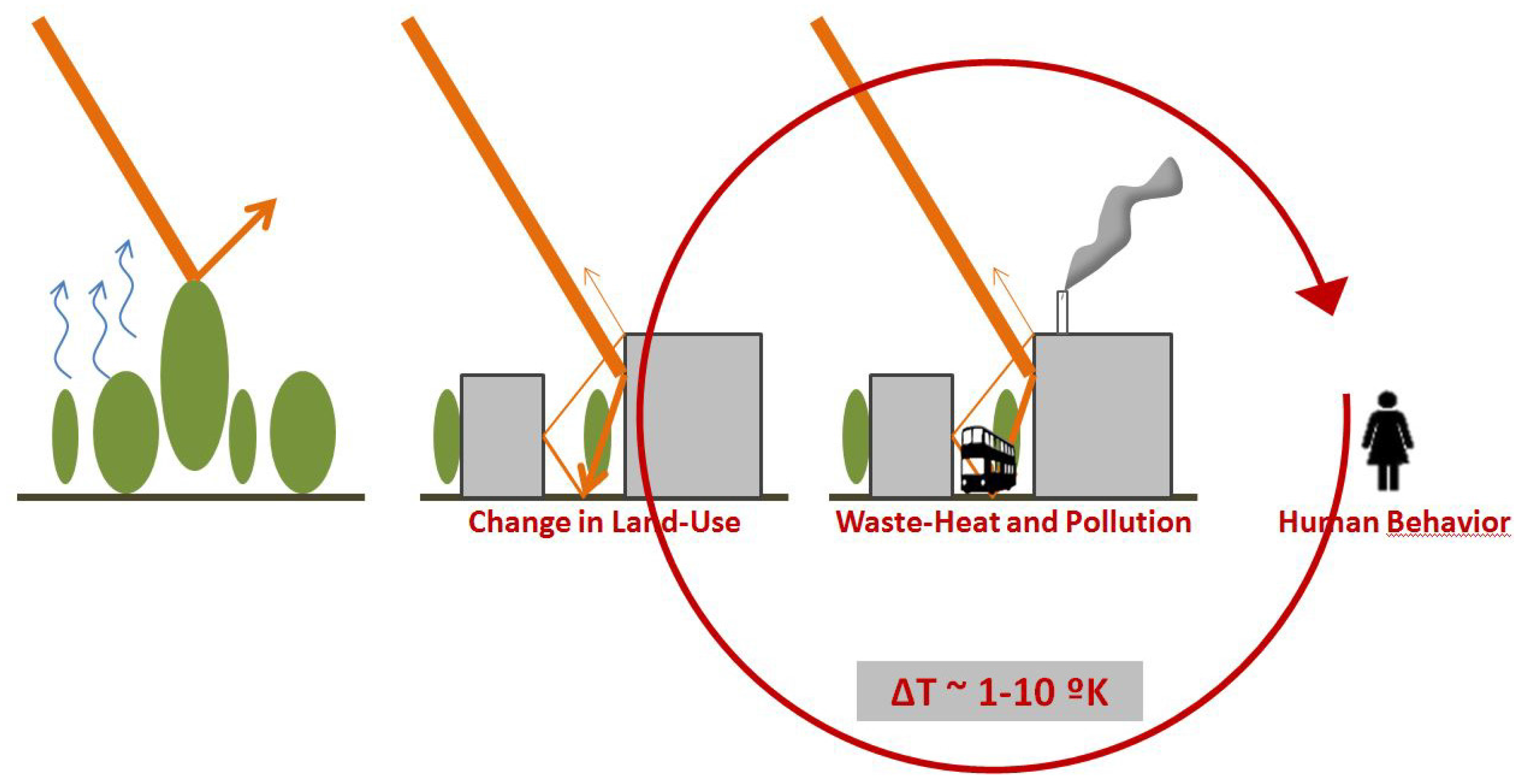The microclimatic modifications in the urban environment are produced by the interaction of the causes of CC with specific urban issues such as alteration of the surface energy balance (i.e., higher albedo, reduced evapotranspiration potential, and increased thermal storage), waste-heat and localized generation of pollution, human behavior, and other factors. It has been observed [17] that the factors contributing to climate change have often been driven by powerful commercial stakeholders, including the energy, construction, and banking industries, which address cities as agglomerations of assets rather than “living organisms”.