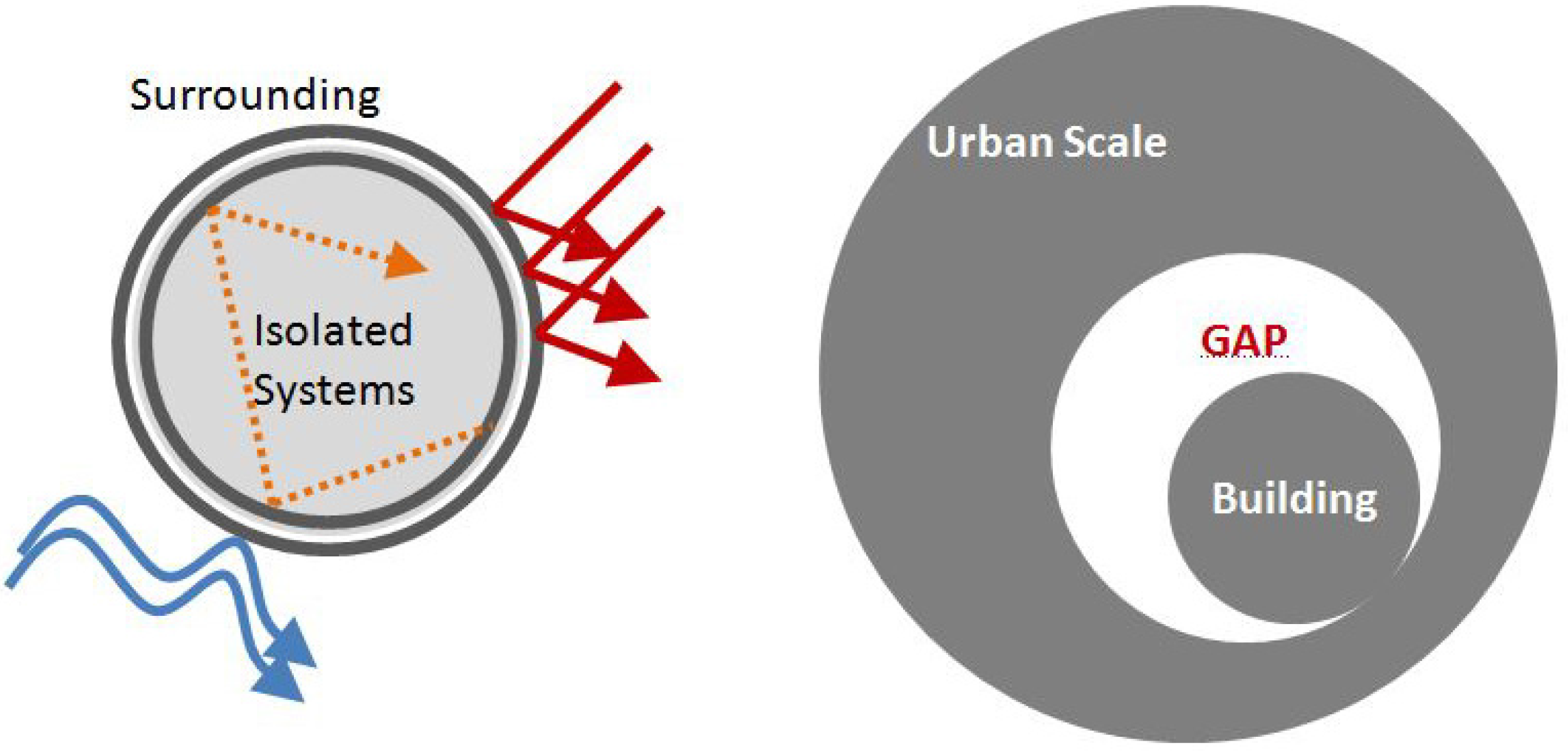 (left) Isolated system: the figure represents the aim/scope of traditional focus on energy efficiency; (right) The gap.