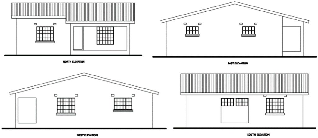 The Figure 2 below show the floor plan and elevations of the building model: