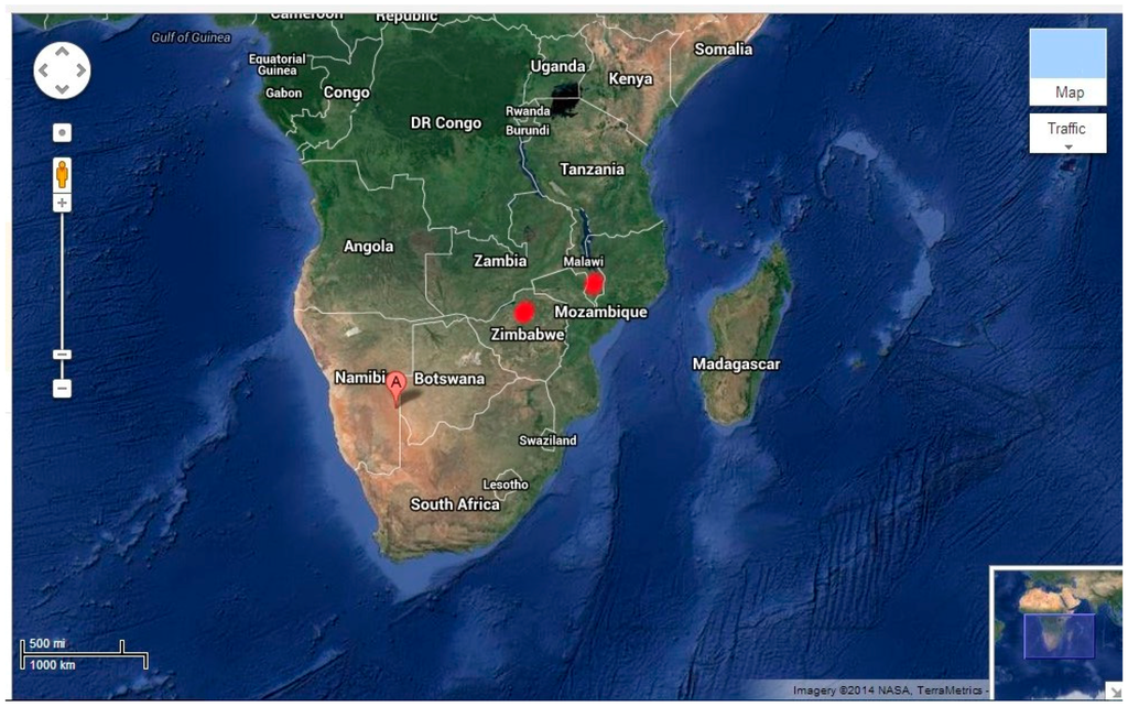 - Map of Malawi & Zimbabwe. Available online: www.google.com/maps (accessed on 30 June 2015).