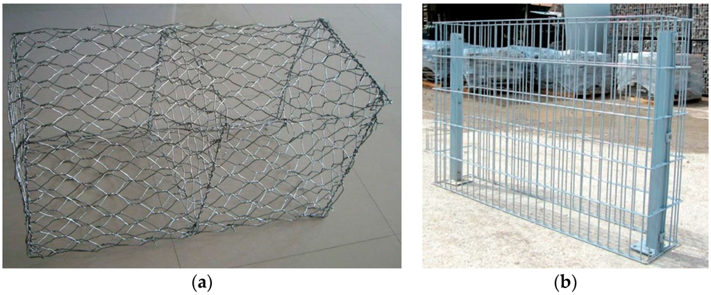 (a) Gabion with polygonal net; (b) Gabion with rectangular net.