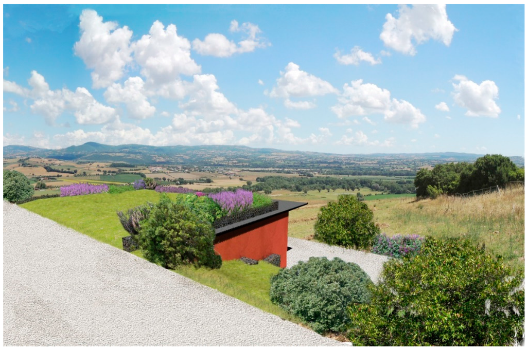 A layer of fertile soil (about 0.50 m) is arranged on the galvanized steel sheets to form a green roof system, suitable for horticulture and cultivation of herbaceous species and shrubs, particularly Marruca (Paliurus spina-christi), which gave the name to the rural village object of this study.