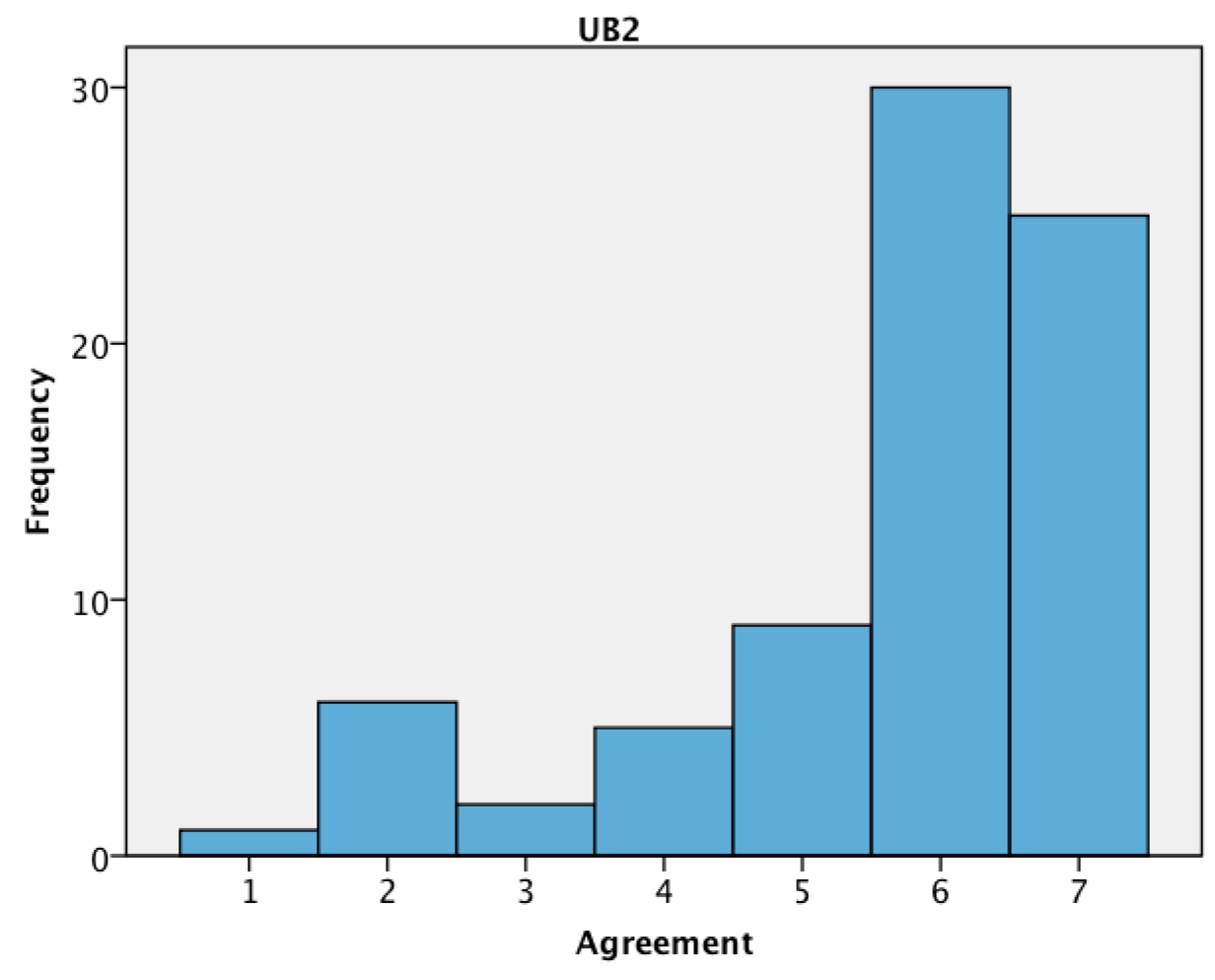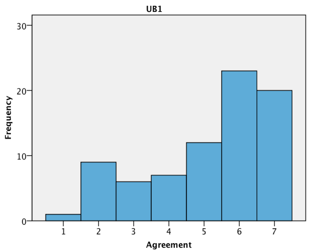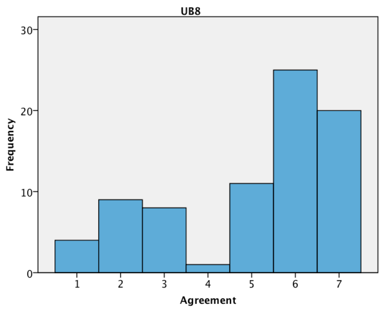 Figure 4 and Figure 5 show the frequency distributions of agreement to UB4 and UB5, respectively. The results show that a high proportion of users regularly adjust their thermostat, both on weekdays and on weekends.