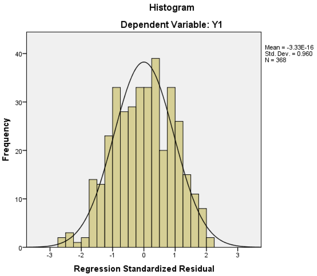 The Table 10 below shows the value of R square computed after regression analysis. In statistics, regression validation is the process of deciding whether the numerical results quantifying hypothesized relationships between variables, obtained from regression analysis, are acceptable as descriptions of the data. The validation process can involve analyzing the goodness of fit of the regression, analyzing whether the regression residuals are random, and checking whether the model’s predictive performance deteriorates substantially when applied to data that were not used in model estimation. An R2 (coefficient of determination) close to one does not guarantee that the model fits the data well, because as Anscombe’s quartet shows, a high R2 can occur in the presence of misspecification of the functional form of a relationship or in the presence of outliers that distort the true relationship. The Figure 14 shows the regression standardized residual and the plotting of the dependent variable Y1 as a parabolic curve.