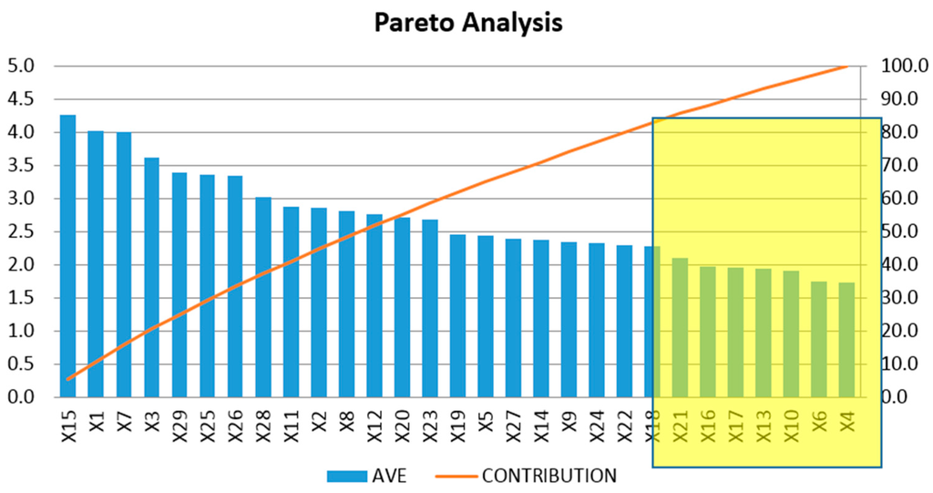 3.1.1. Pareto Analysis for Identification of Significant Independent Variable