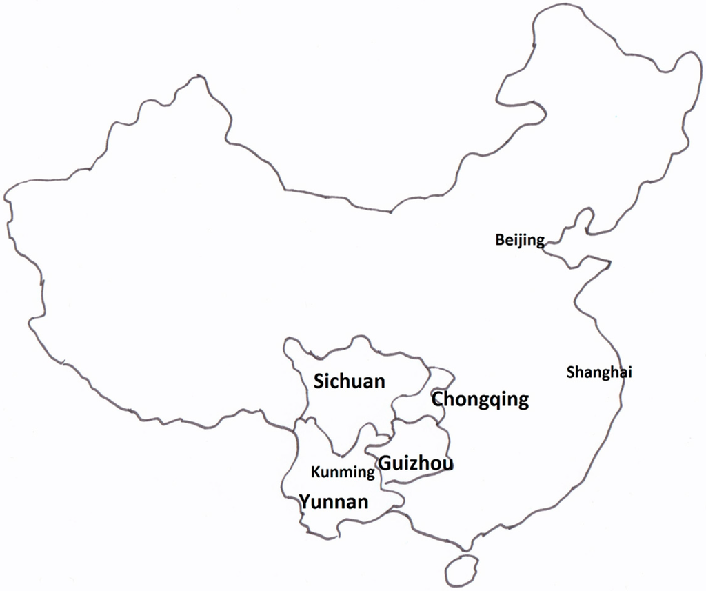 The focus area for the larger research study of which this paper reports a part is southwest China, the provinces of Yunnan, Guizhou and Sichuan. Also associated is the city of Chongqing and its environs (which is currently one of China’s four centrally-controlled municipalities, but which was formerly part of Sichuan). The outline of the location is shown in Figure 1.